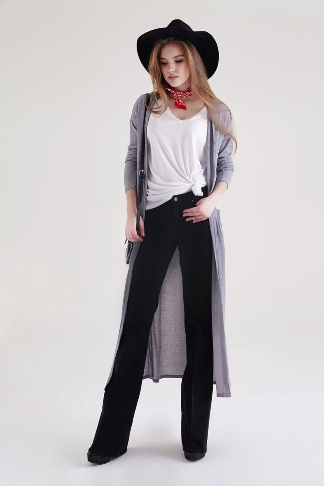 Bağcıklı Paça Detaylı Gri Bol Pantolon