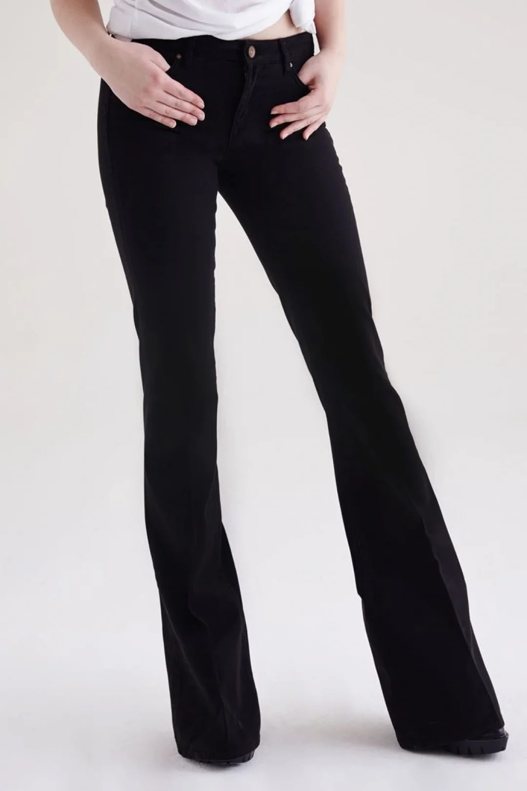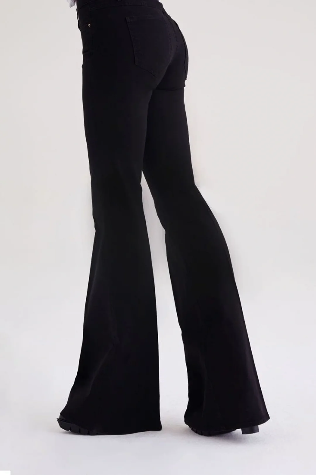Siyah Düşük Bel İspanyol Paça Pantolon – Flare Stil