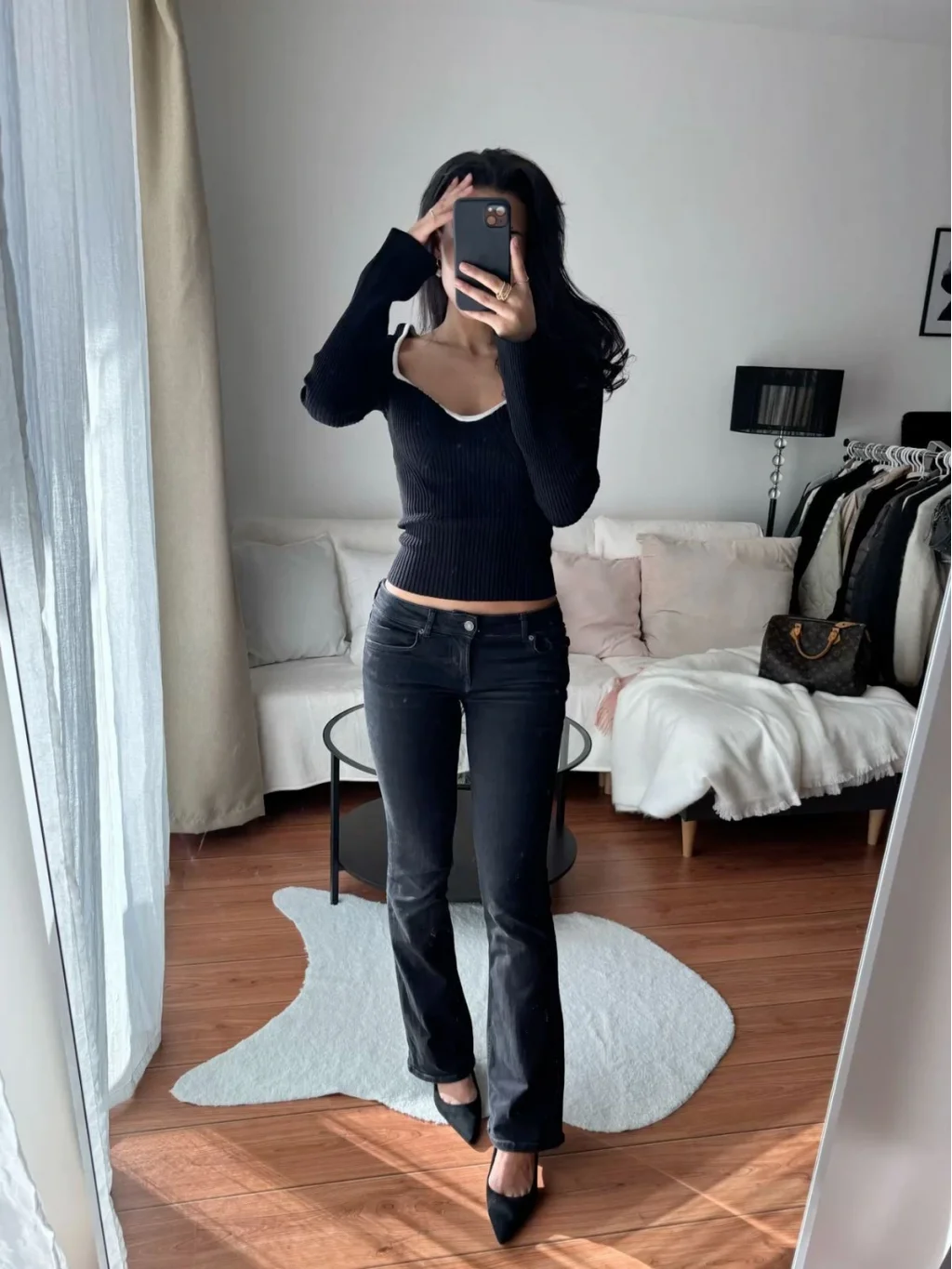 Y2K Vintage Siyah Düşük Bel İspanyol Paça Pantolon Flare Stil Z