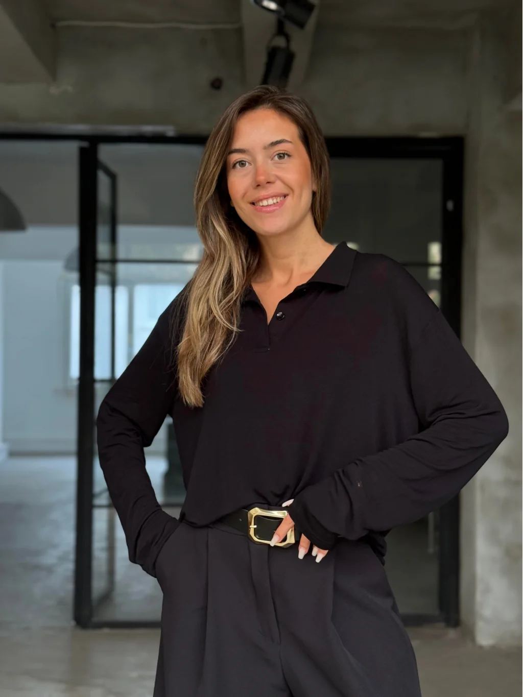 Modern ve sade tarzın buluştuğu siyah oversize gömlek bluz , yumuşak dokusu ve rahat kesimiyle günlük kombinlerin vazgeçilmezi. Düşük omuz detayıyla salaş bir görünüm sunarken, hafif kumaşı sayesinde gün boyu konfor sağlar. Ofis şıklığından hafta sonu rahatlığına kadar her ortama uyum sağlar. Geniş kalıbı ile vücuda oturmadan zarif bir duruş sergiler.Transparan kumaşıyla modern ve şık bir görünüm sağlar.