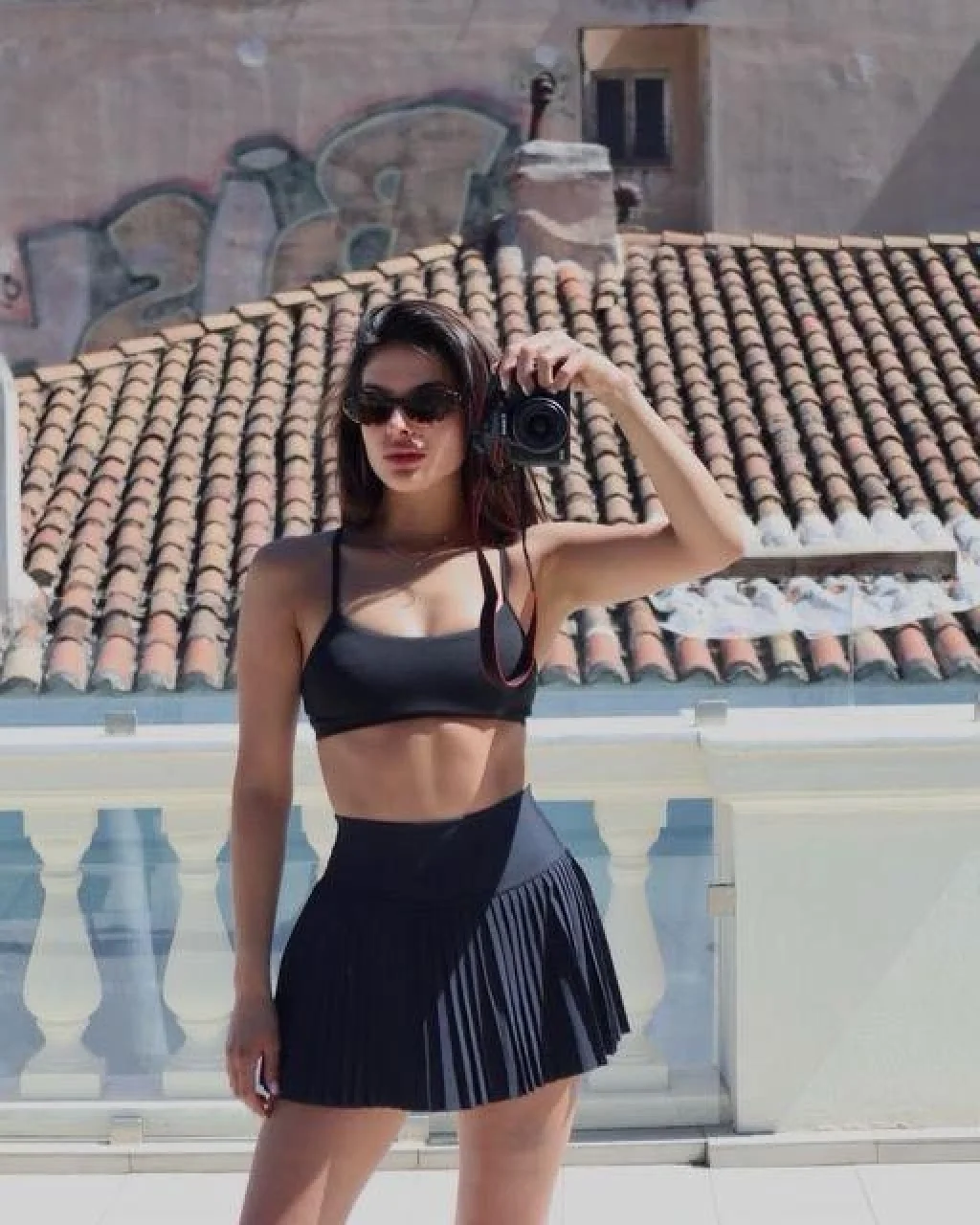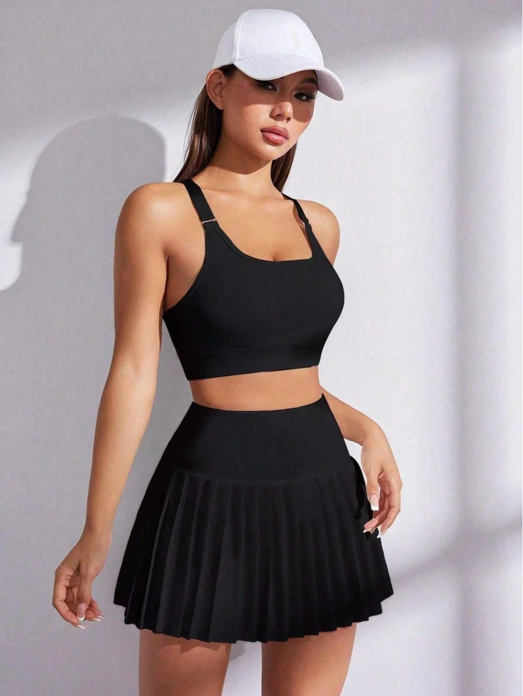 AO Yüksek Bel Şortlu Pileli Siyah Spor Etek – Skort Atletik Tenis Model Şort Etek