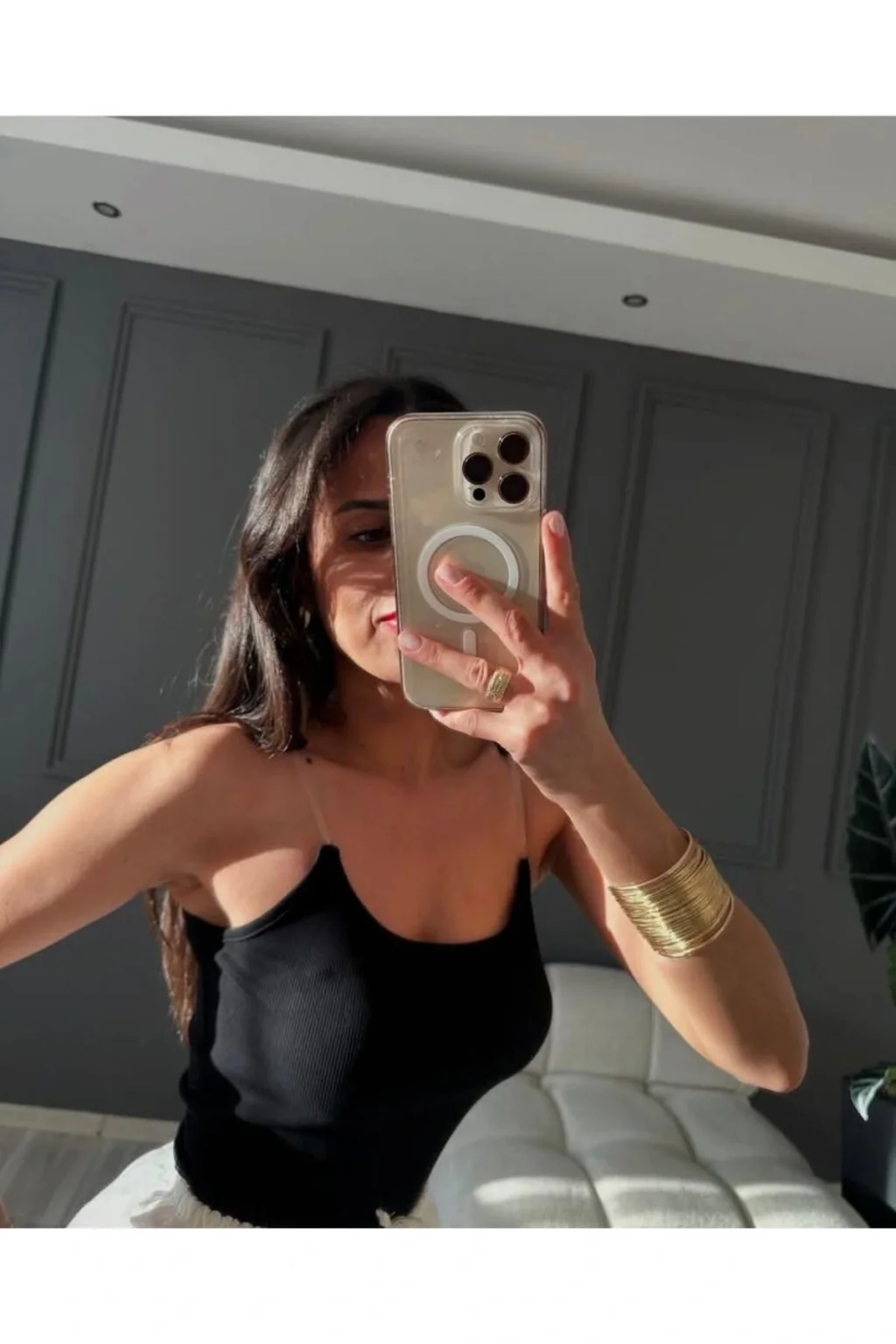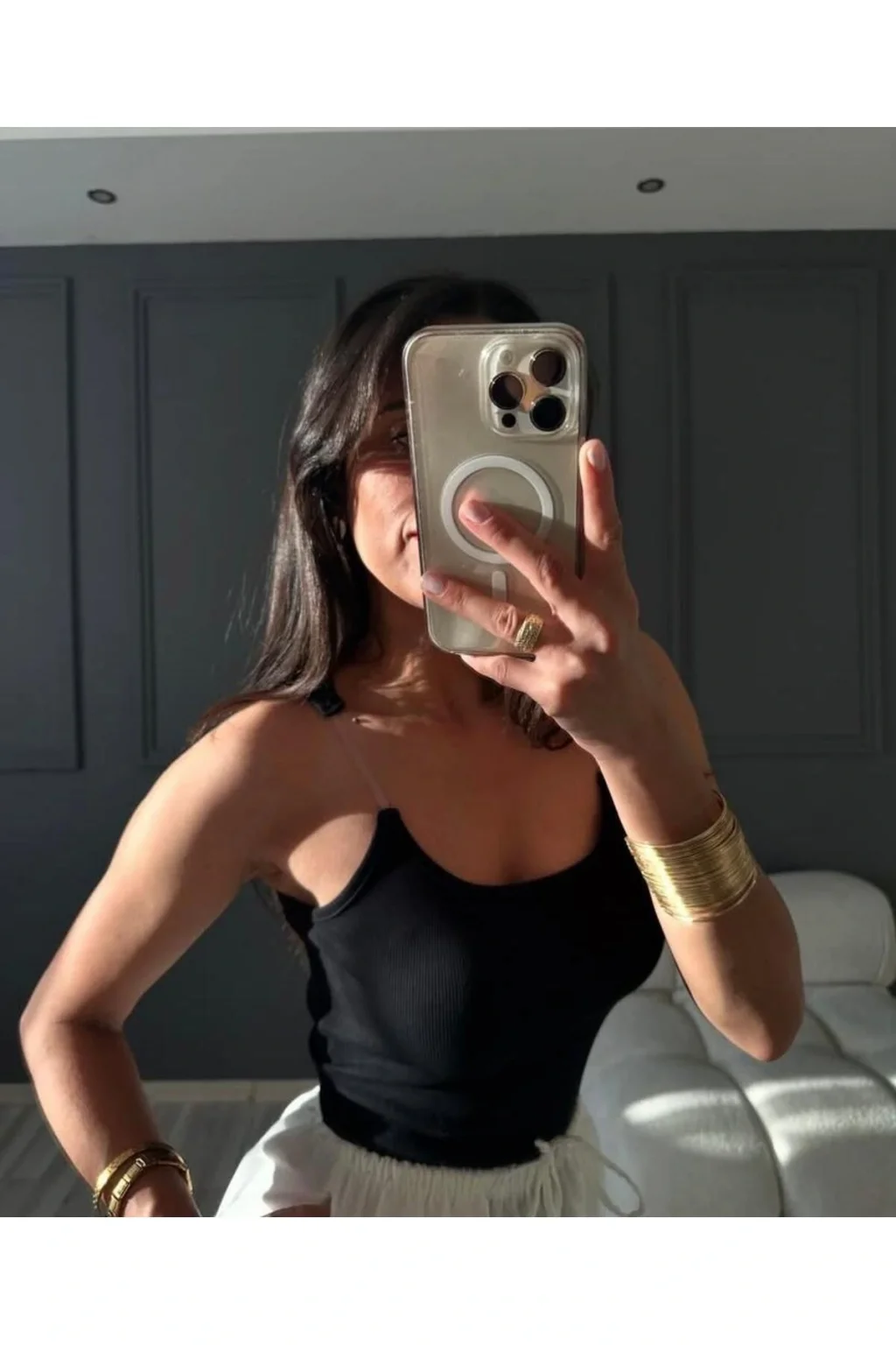 Siyah Şeffaf Askı Detay Atlet Bluz