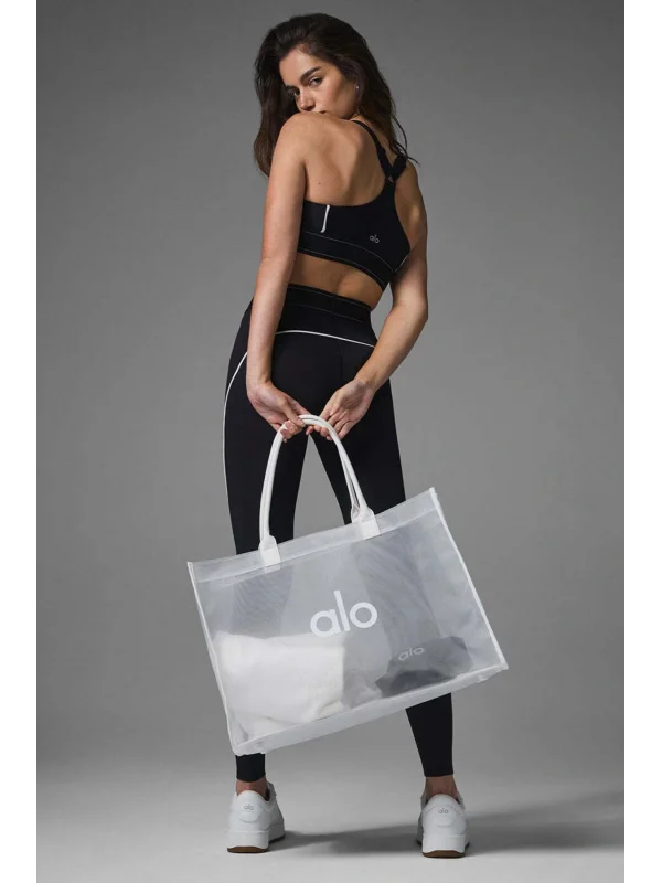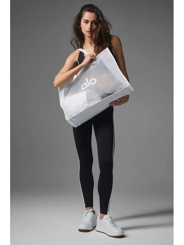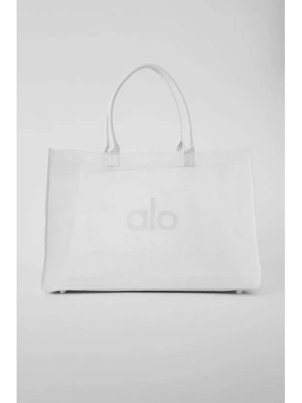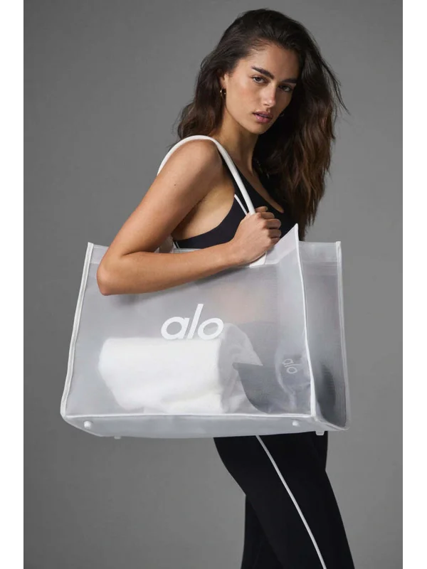 Şeffaf Fileli Transparan Plaj Spor Yoga Çantası Geniş Hacimli ve Şık Tasarım Kullanışlı Çanta Beyaz