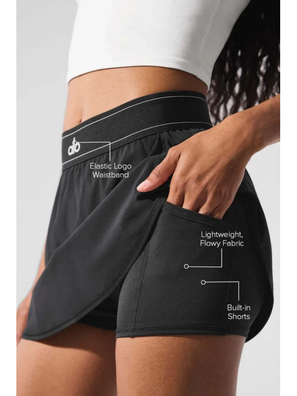 Ao Yüksek Bel Elastik Şortlu Siyah Spor Etek Tenis Yoga Günlük Şort Etek