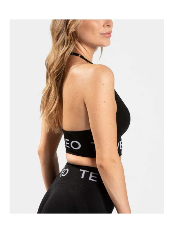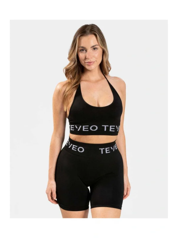 Siyah Dikişsiz Fit Sporcu Sütyeni Destekli Crop Spor Üst