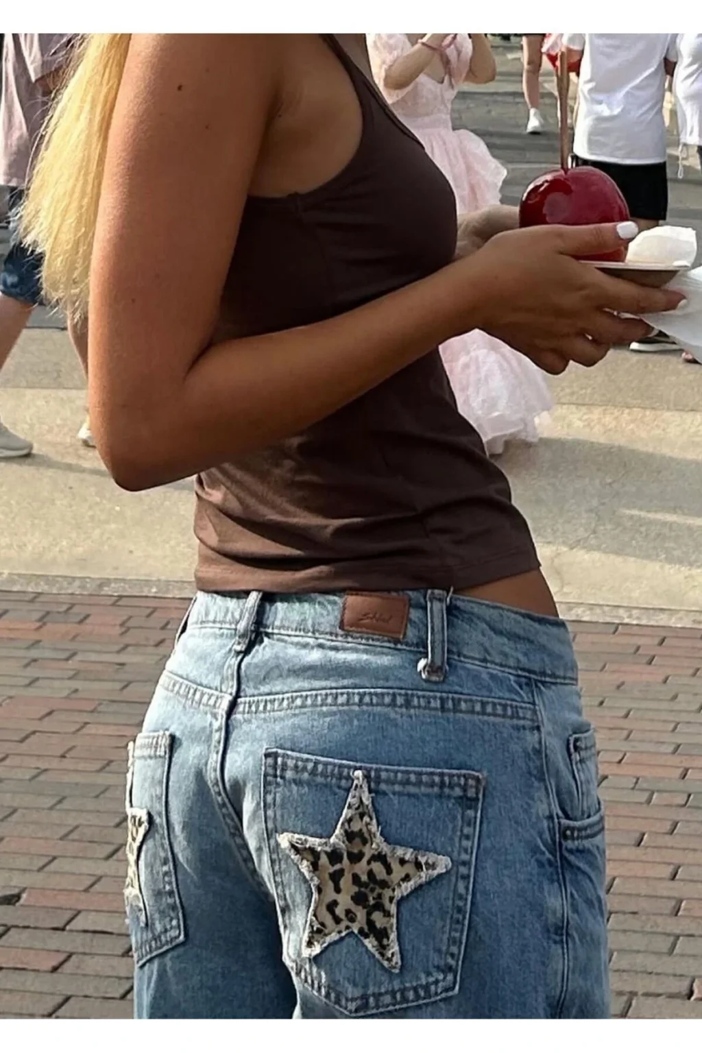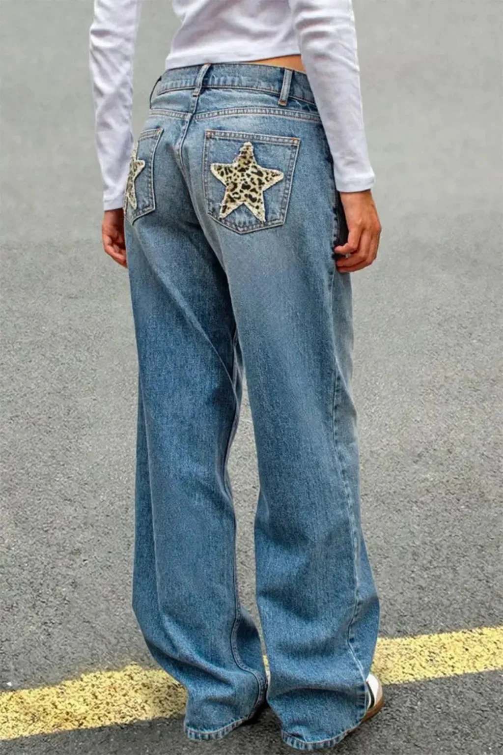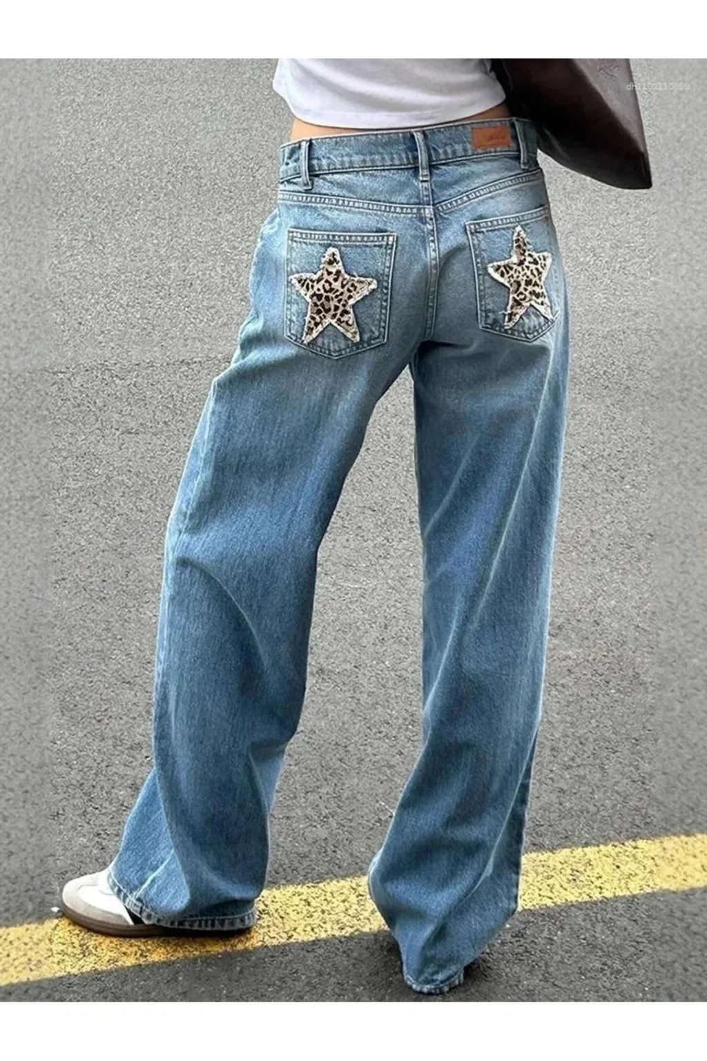 SUBD Leopar Yıldız Cepli Kot Pantolon ;