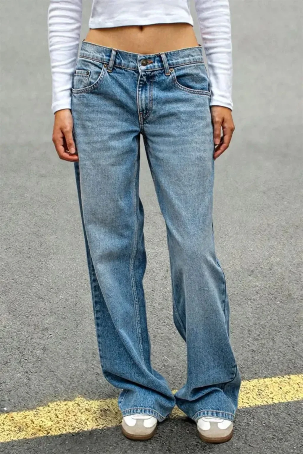 SB Düşük Bel Geniş Paça Kot Pantolon