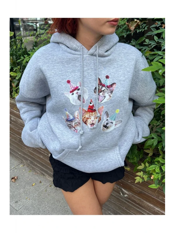 Oversize Kapüşonlu Sweatshirt Yumuşak Dokulu Günlük Rahat Stil Hoodie