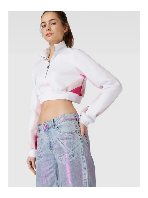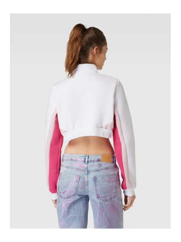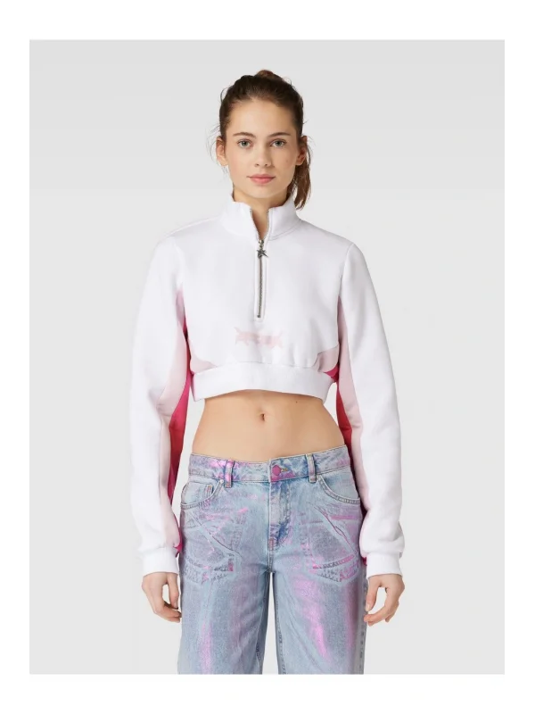 VibeGaia Beyaz Pembe Çizgili Crop Sweatshirt