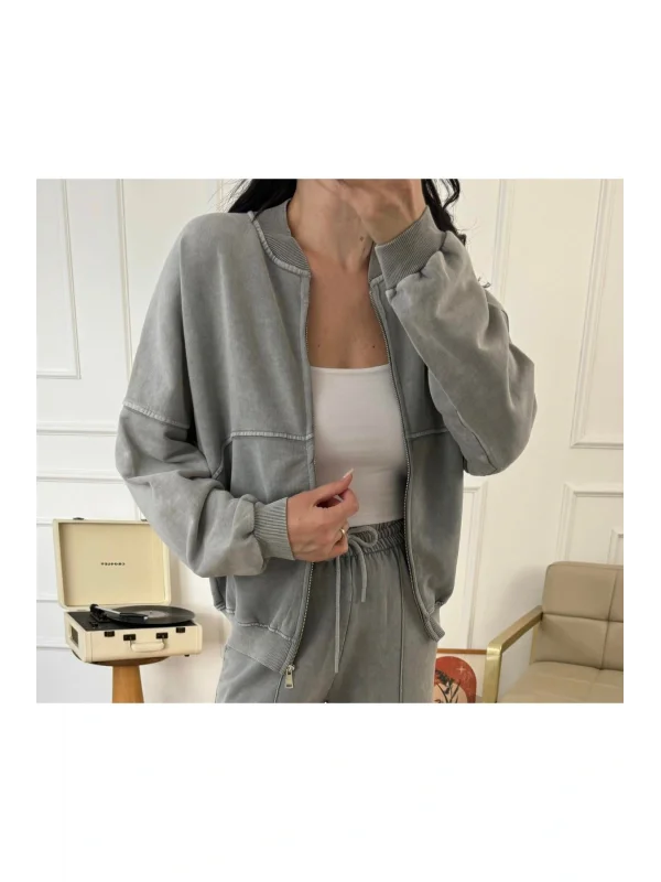 VibeGaia Yıkamalı Fermuarlı Hırka