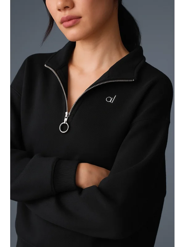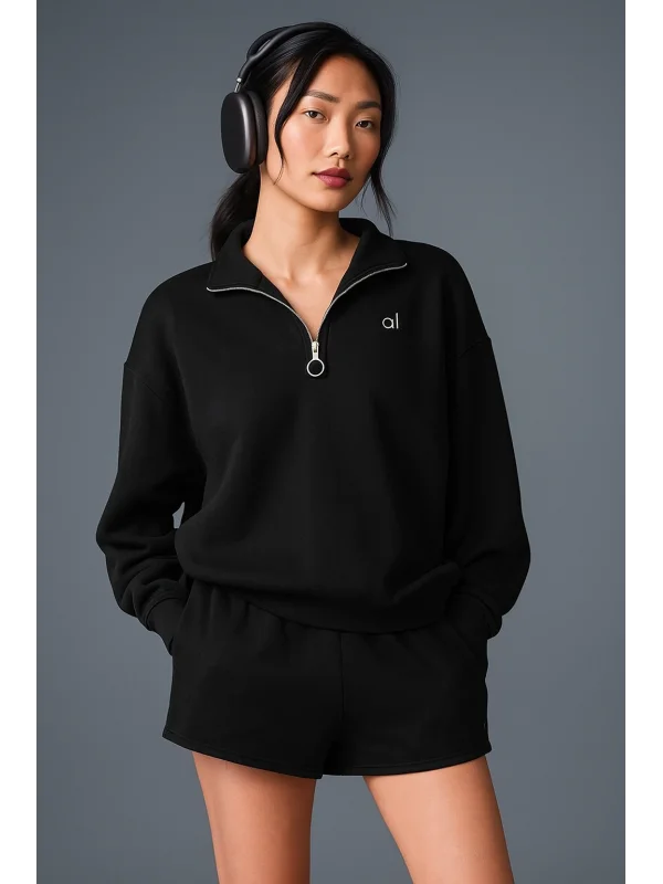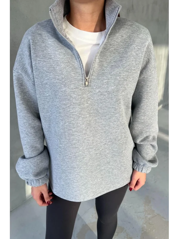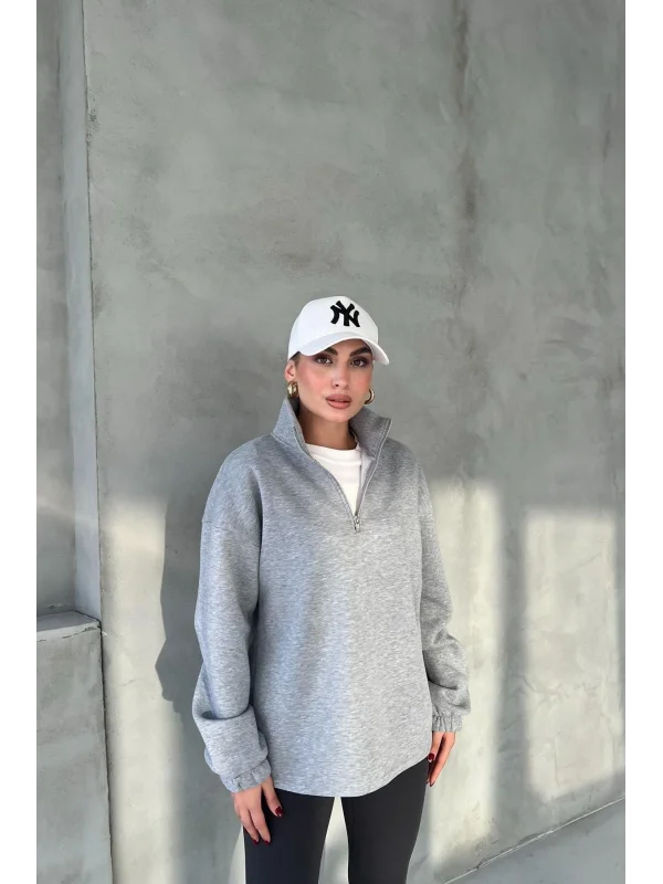 Yarım Pat Fermuarlı Yumuşak Dokulu Rahat Kalıp İnce Kumaş Oversize Sweatshirt