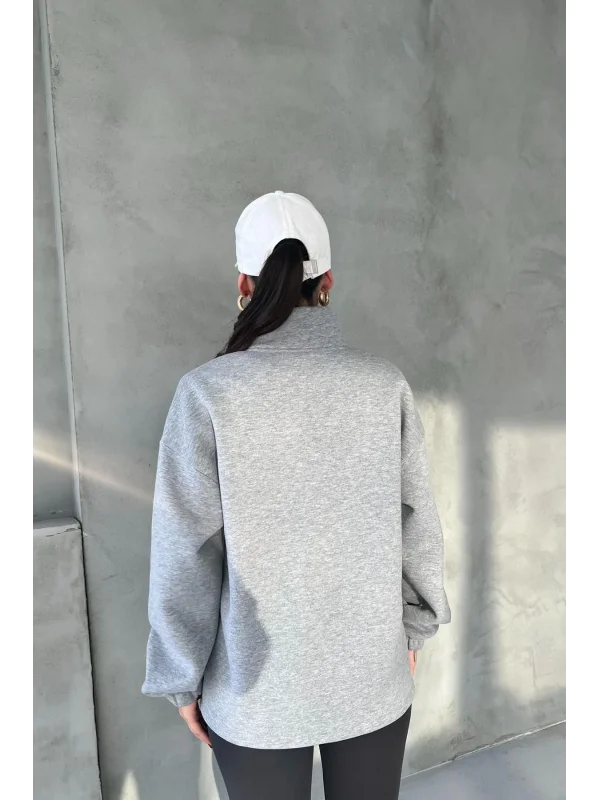 Yarım Fermuarlı Dik Yaka Sweatshirt
