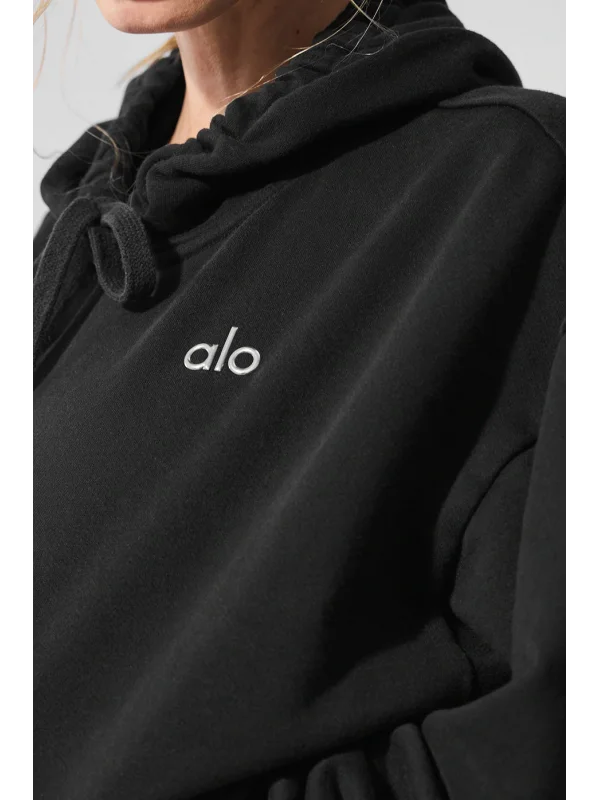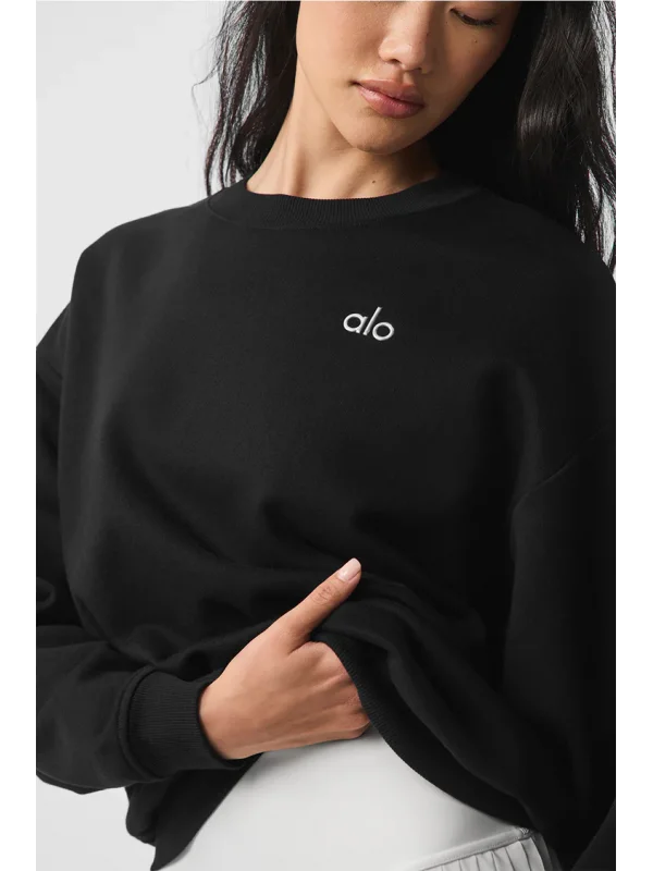 AO Baskılı Kadın Siyah Taş Detaylı Oversize Sweatshirt
