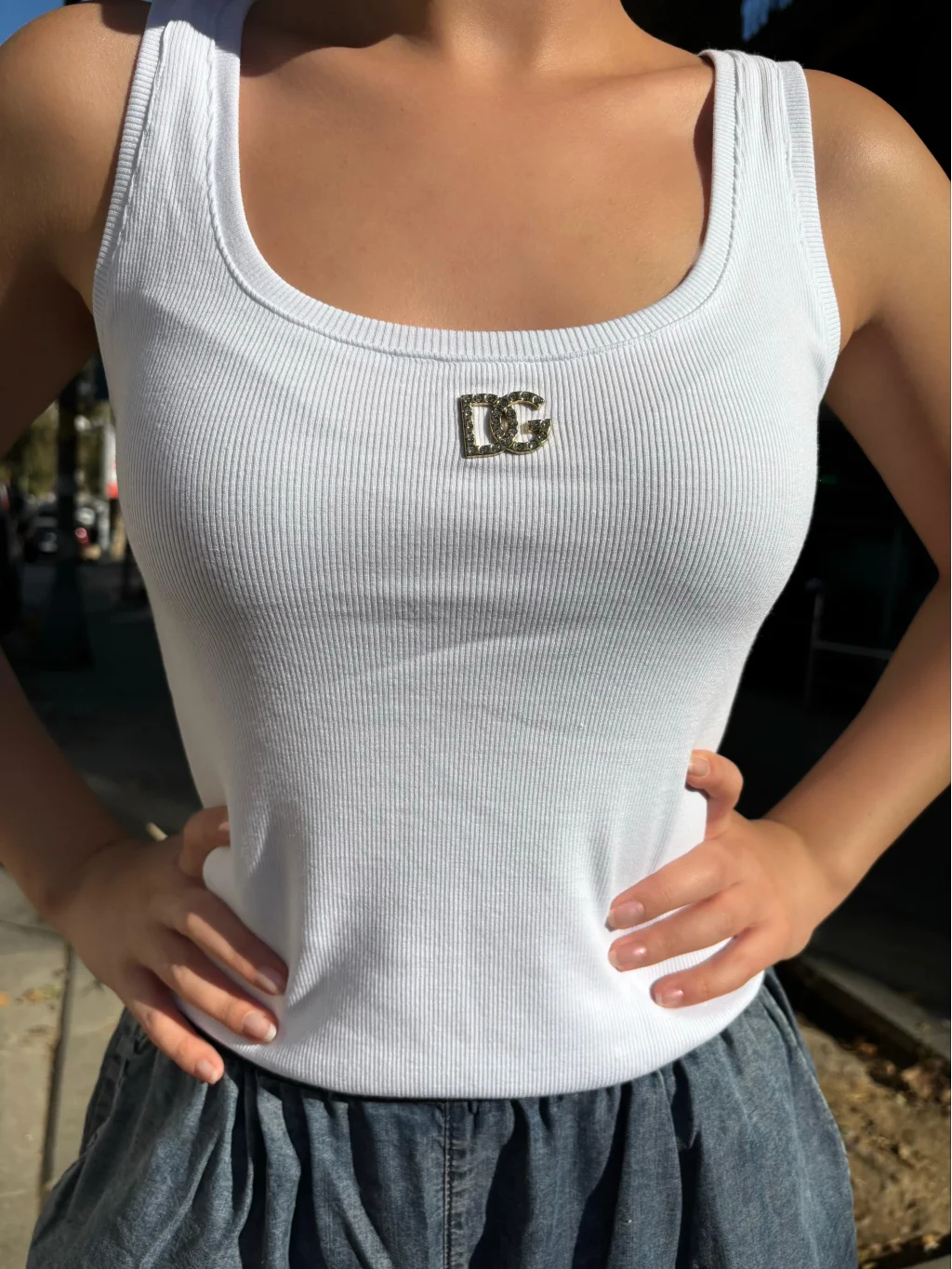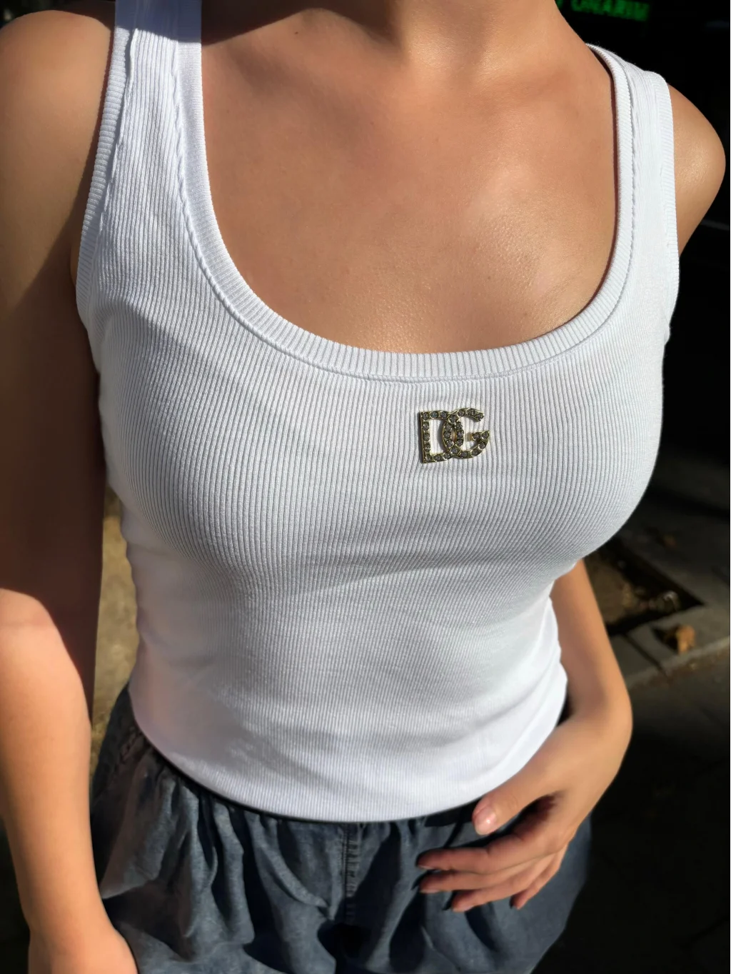 Logo detaylı beyaz atlet, şıklığı ve rahatlığı bir arada sunan kadın üst giyim seçeneklerinden biridir.