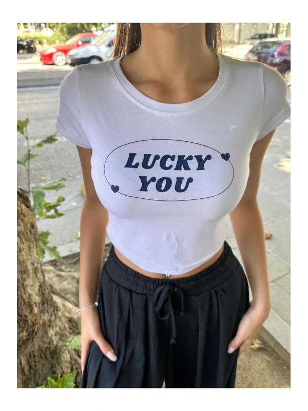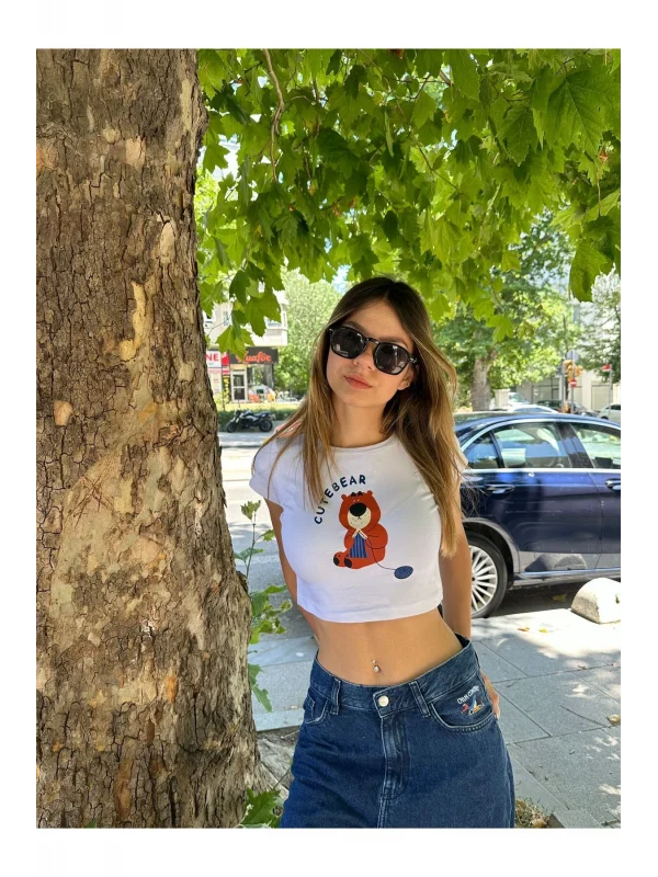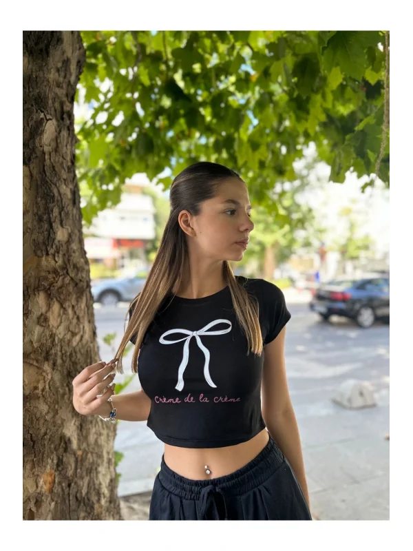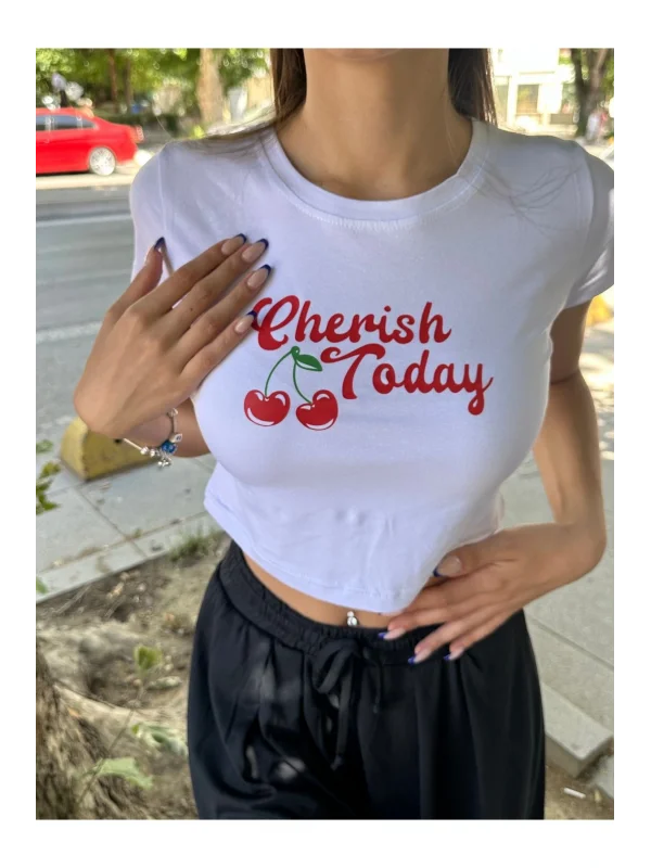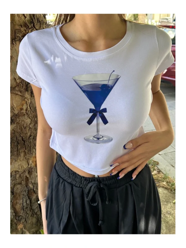 y2k Fiyonk Kadeh Baskılı Crop Top