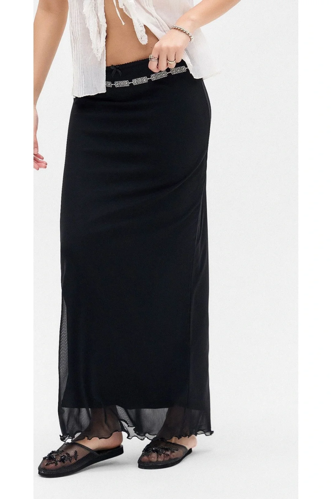 URB İçi Astarlı Şifon Siyah Uzun Etek
