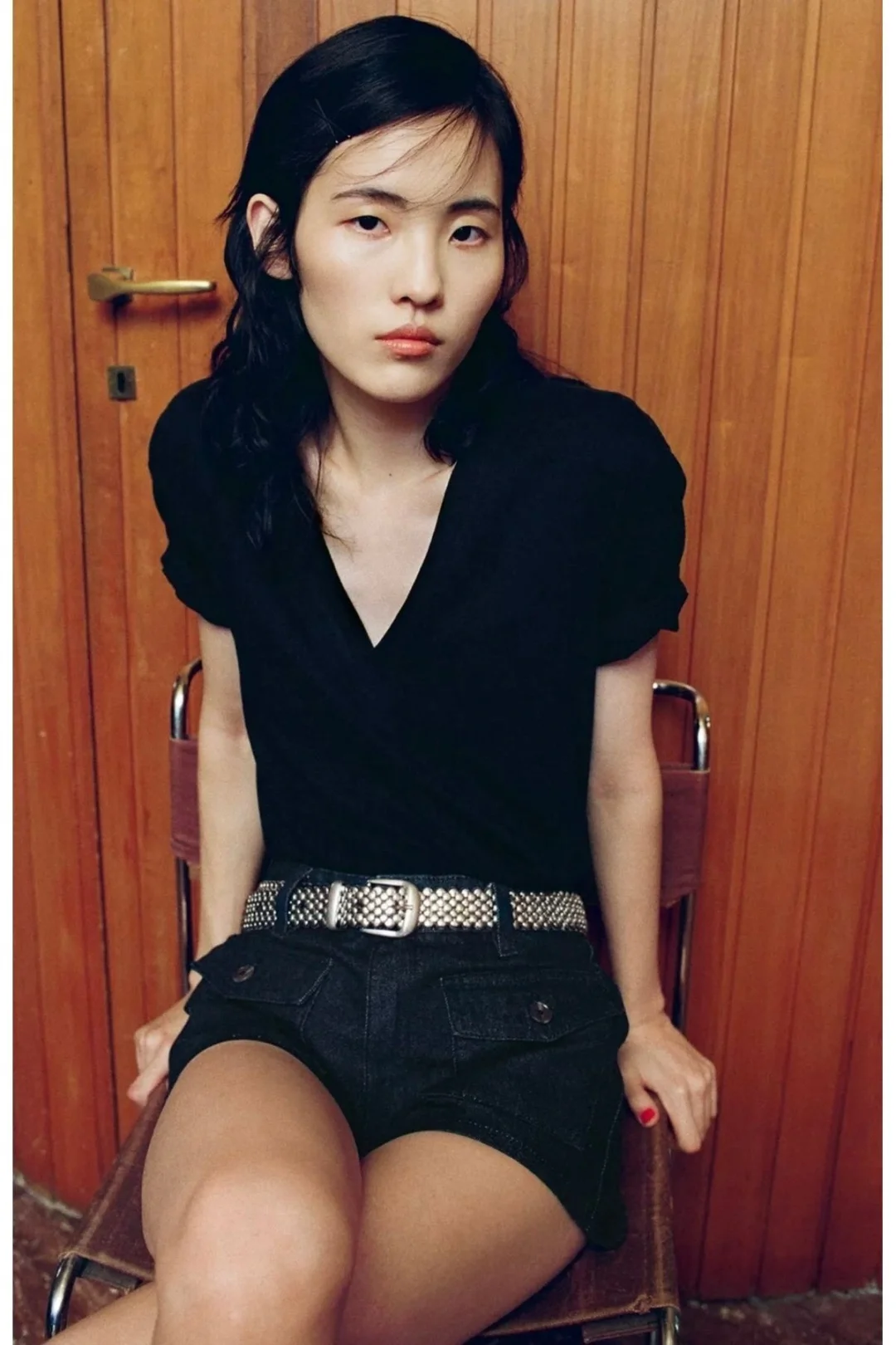 Dantel Kirazlı Fiyonk Crop Tshirt