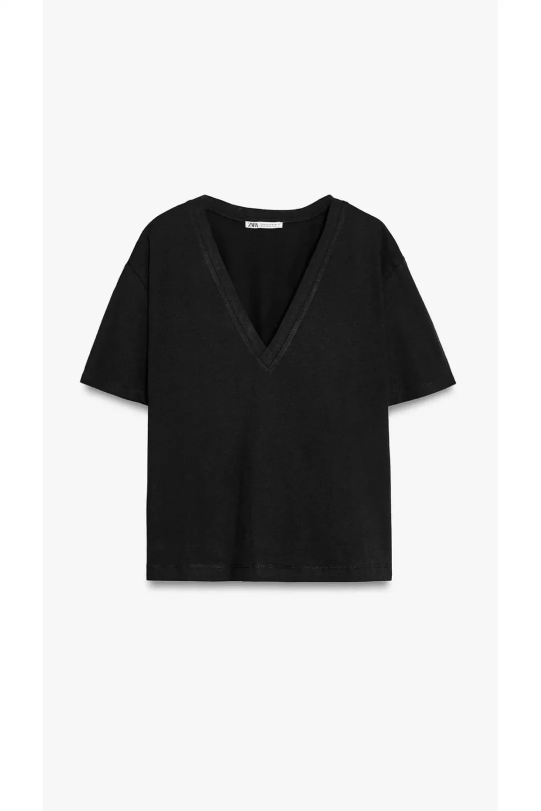Kadın %100 Pamuk V Yaka Basic Tişört