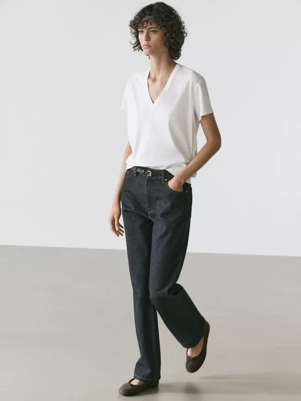 Beyaz V Yaka Tişört