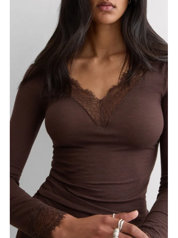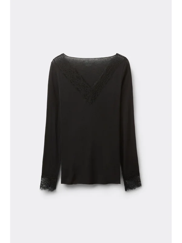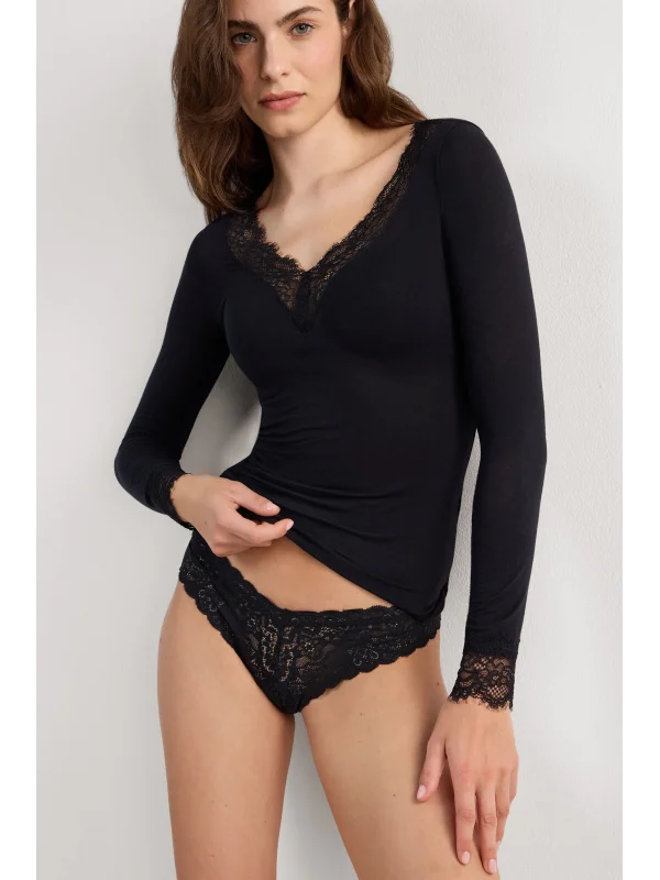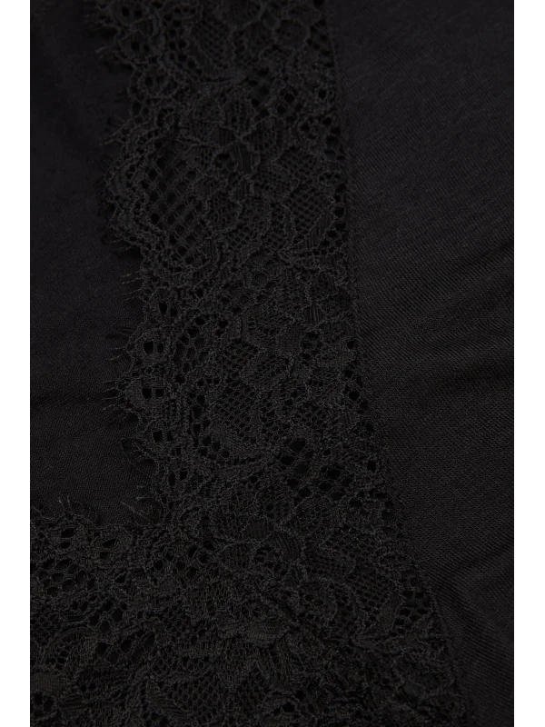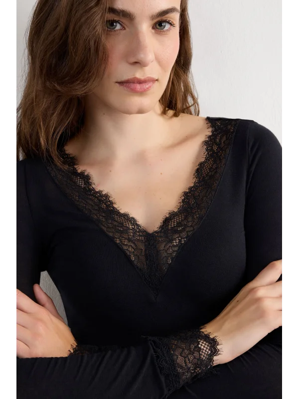 Petrol Mavisi Dantel Uzun kollu Bluz