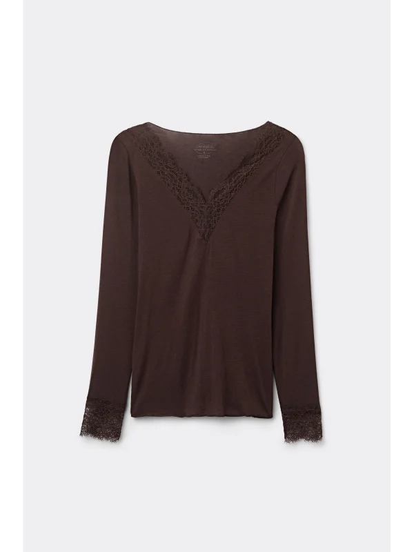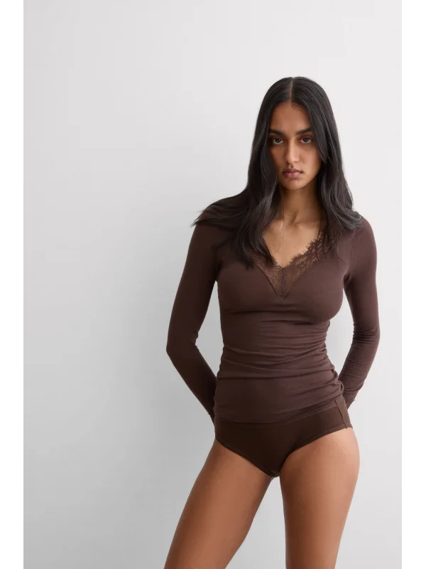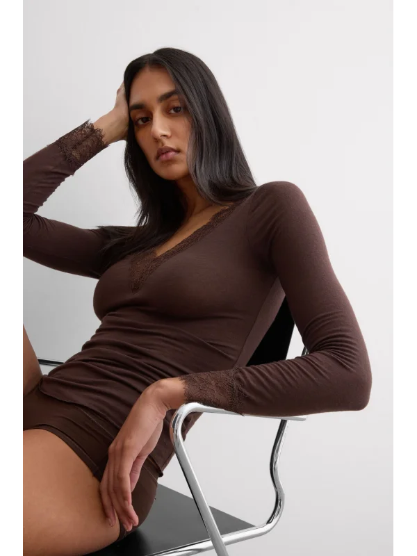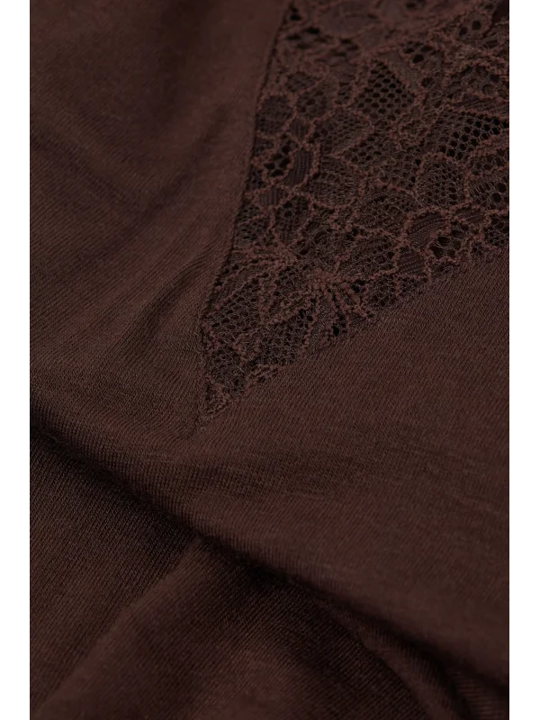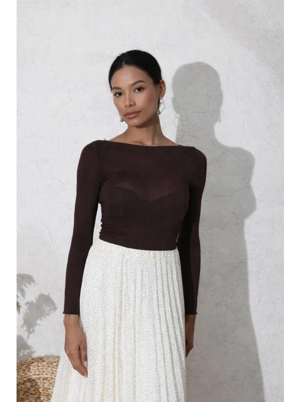 TRS Çilek Doku Kayık Yaka Acı Kahve Transparan Bluz
