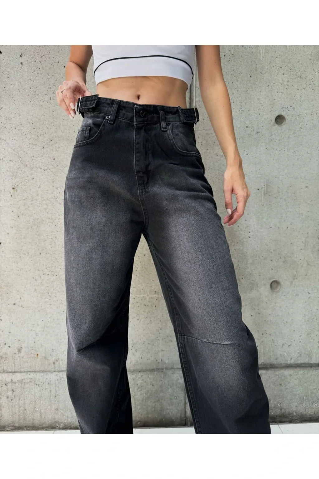 Düşük Bel Gri Düz Paça Jean Pantolon