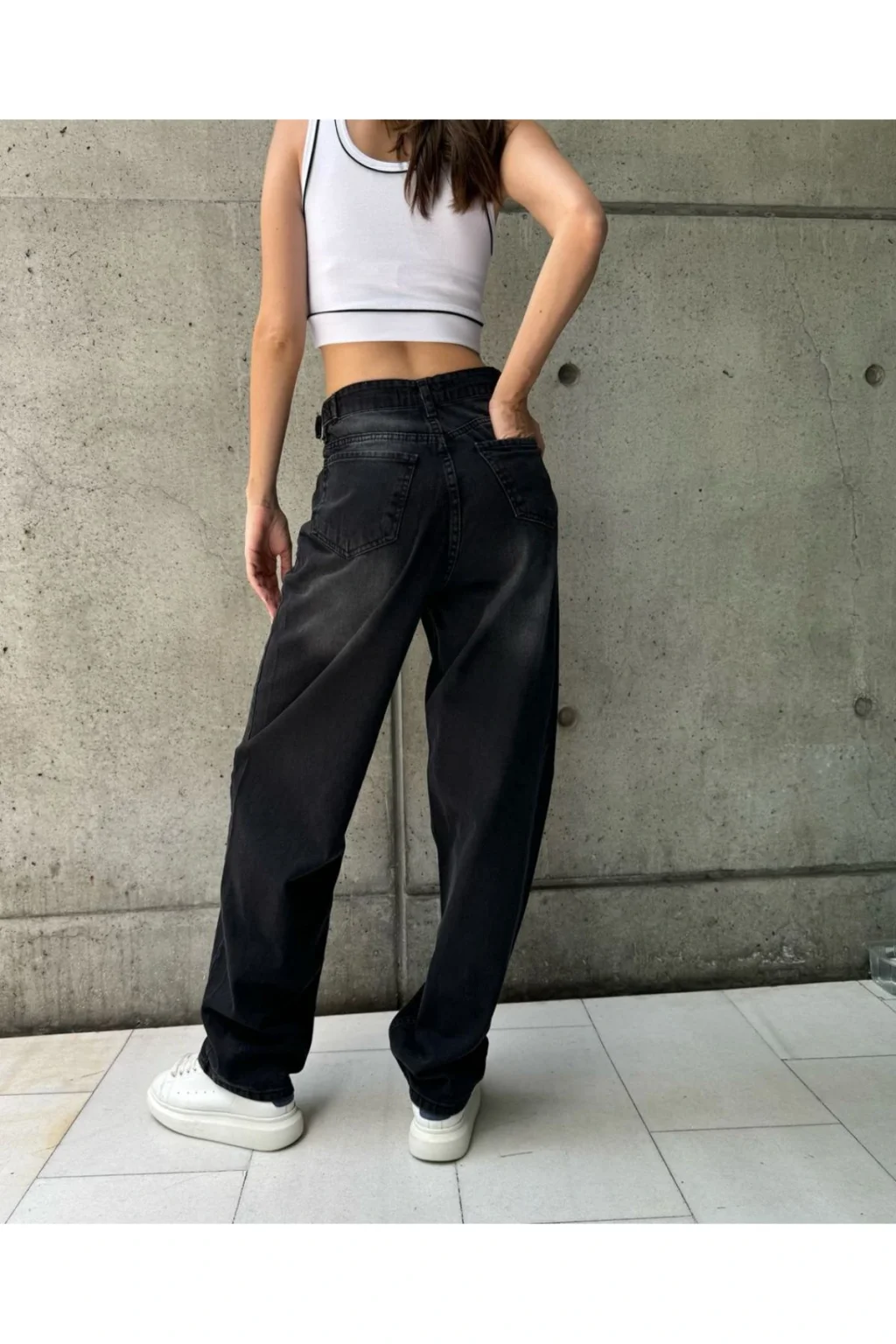 Düşük Bel Koyu Denim Ekstra Baggy Jean Pantolon