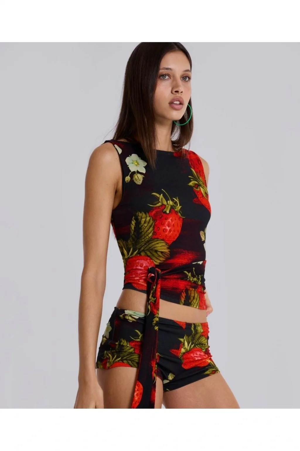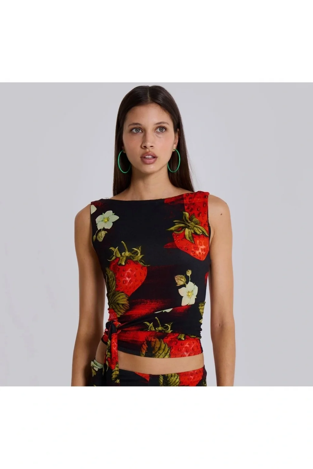 Vibegaia Çilek Dokulu Kruvaze Sırt Dekolteli Bluz