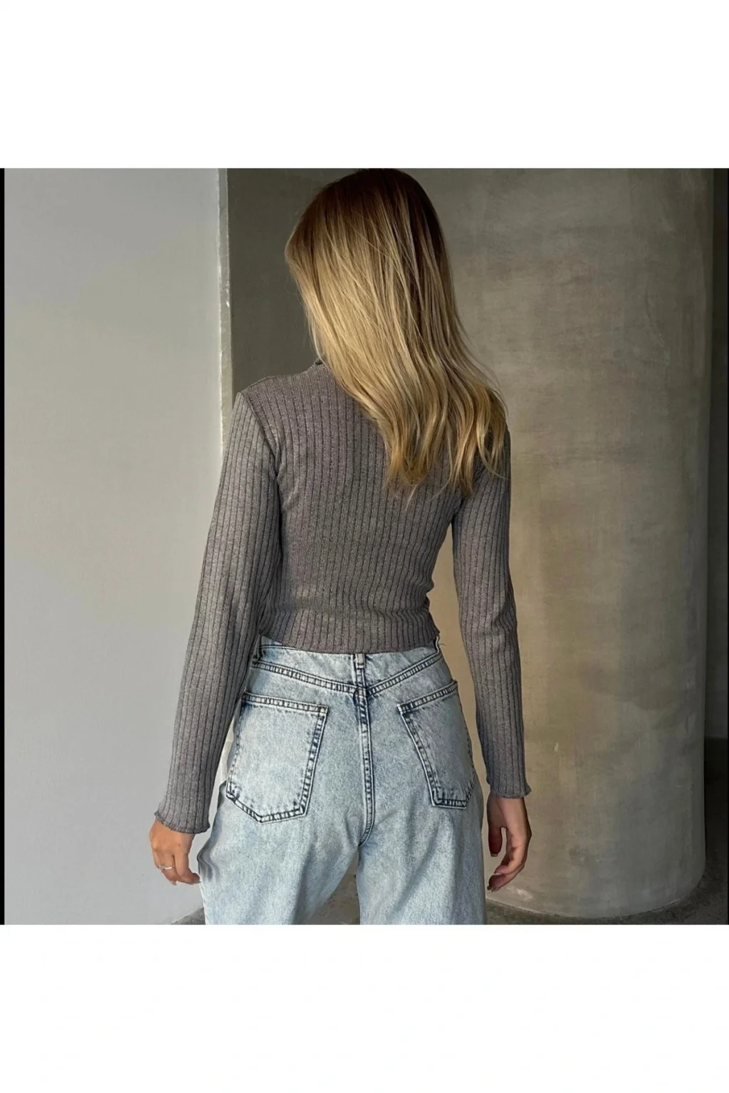 Yakalı Fermuarlı Oversize Uzun Triko Hırka