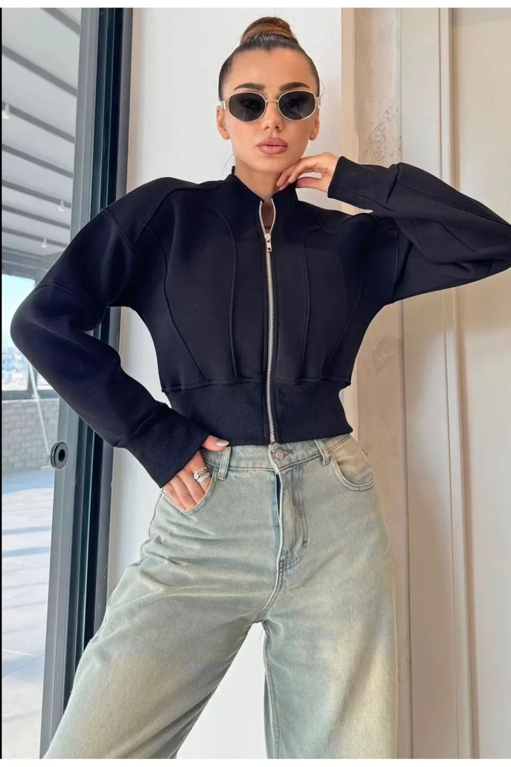 Vibegaia Fermuarlı Dikiş Detay Hırka
