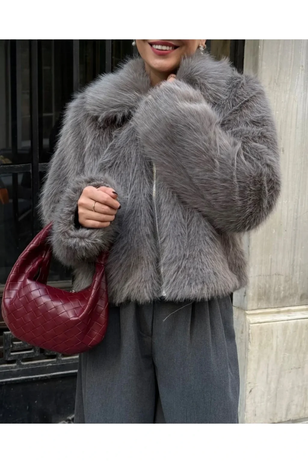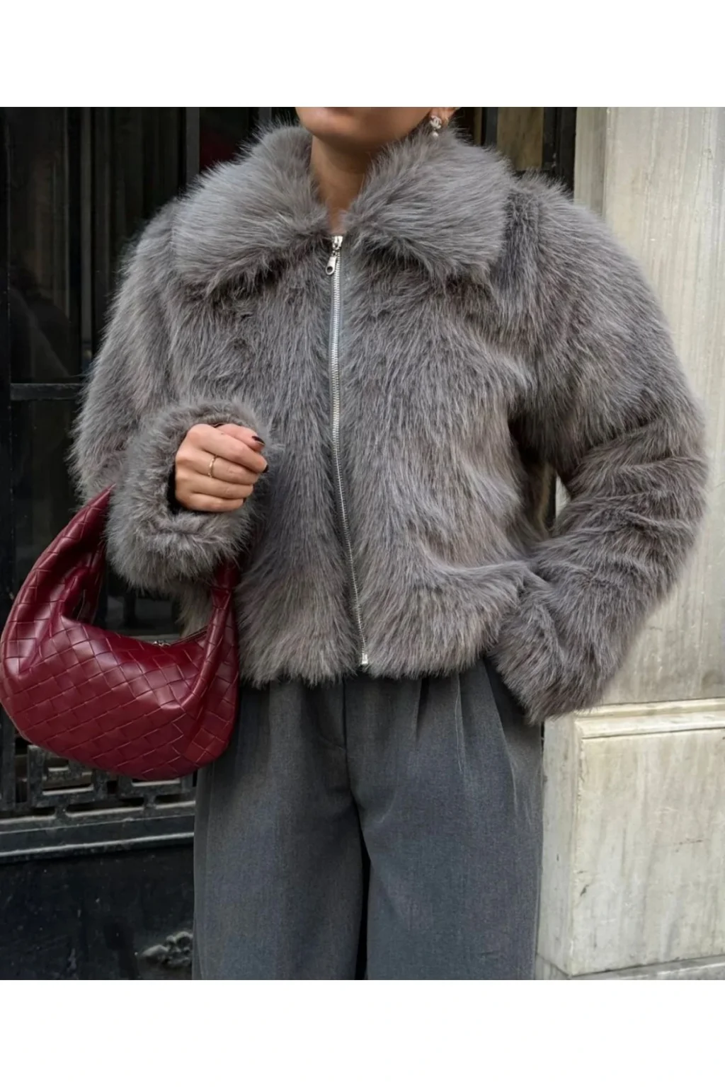 - Zarif gri tonuyla her ortama uyum sağlayan bu kürk, günlük kullanım için idealdir.; - Pratik fermuar kapama özelliği sayesinde kolayca giyilip çıkarılabilir.; - Astarsız yapısı ile hafif ve konforlu bir deneyim sunar.; - T09 yıkama talimatına uygun şekilde temizlenmesi pratiktir; böylece uzun süre ilk günkü gibi kalır.; - Standart boy kesimiyle rahat hareket etme özgürlüğü sağlar.; - Casual tarza sahip olan bu parça, günlük kombinlerinizde şıklığı yakalamanızı sağlar.; - Tekli paketi ile ihtiyacınız olan tek parçanın yanında başka hiçbir şey aramanıza gerek yoktur.; - Rahat kalıbıyla konforlu bir kullanım vaad ederken aynı zamanda feminen siluetini korur.; -Uzun kollu tasarım soğuk havalarda ekstra koruma sağlarken gömlek yaka detayı modern bir görünüm kazandırır.; -Düz deseniyle sadelikten yana olanların tercihi olacak bu kürk, gardrobunuza sade ama etki bırakacak parçalardan biridir.; -Kemersiz yapısıyla minimalist çizgilere önem verenler için mükemmel seçimdir.; -Yetişkin yaş grubuna hitap eden geniş kullanıcı kitlesi düşünülerek tasarlanmıştır.; -Cepsiz oluşuyla basitliği ön planda tutarak zamandan tasarruf etmenizi sağlar -Kadın/kız cinsiyetine yönelik olarak üretilmiş olup tüm beden seçenekleri mevcuttur -Standart kol tipine sahip olması günlük aktivitelerinizde size eşlik edecek fonksiyonellikte dizayn edilmiştir