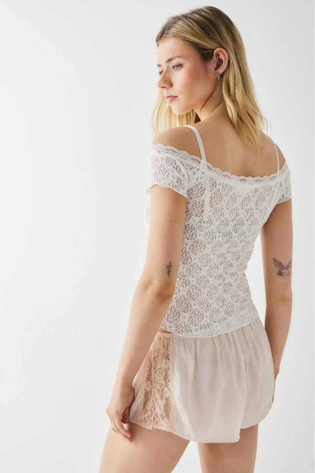Asimetrik Kesim Slim Fit Straplez Dantel Bluz Astarlı Zarif Tasarım