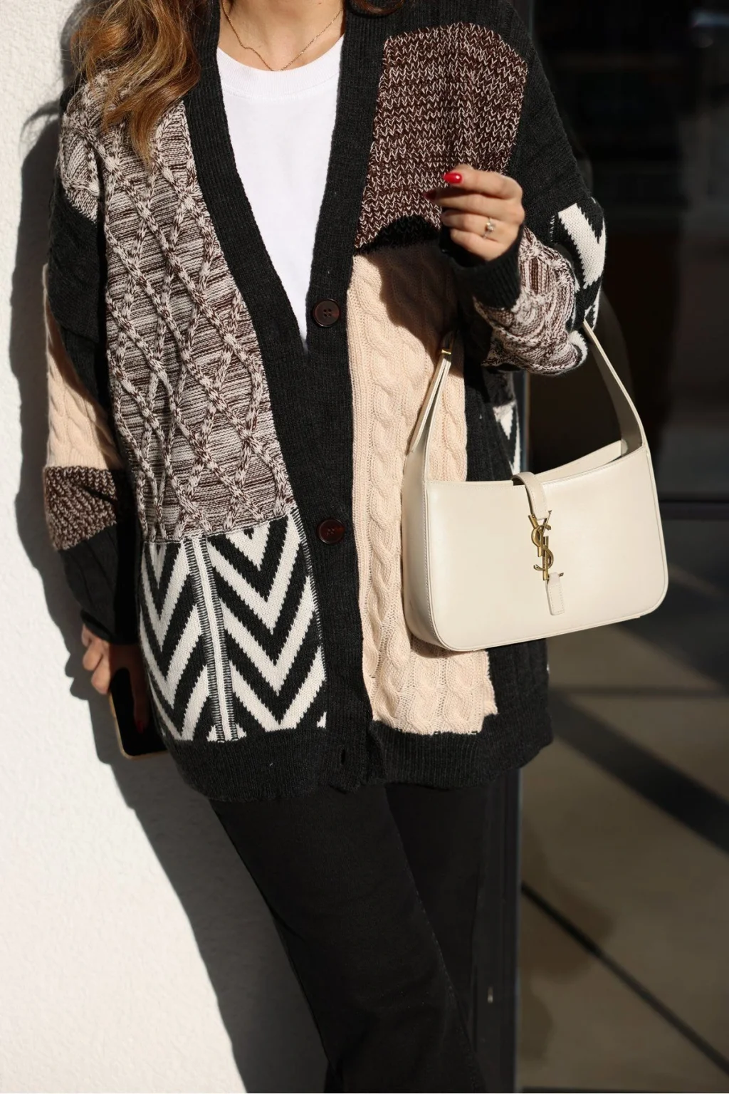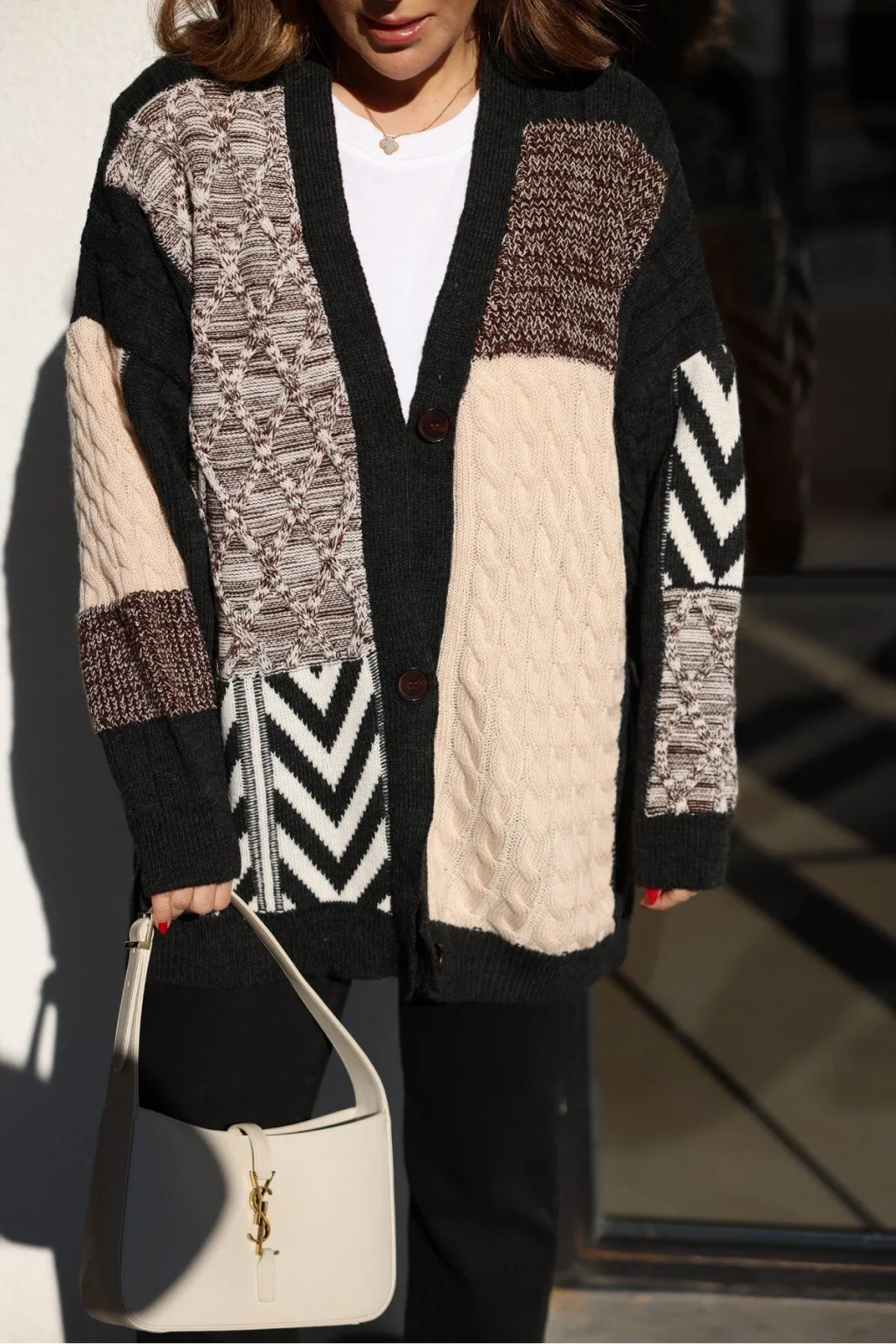 Uzun Kollu Baklava Desenli İnce Triko Hırka – Argyle Ekose Örgü, Cropped Modern Kesim, Düğmeli Model