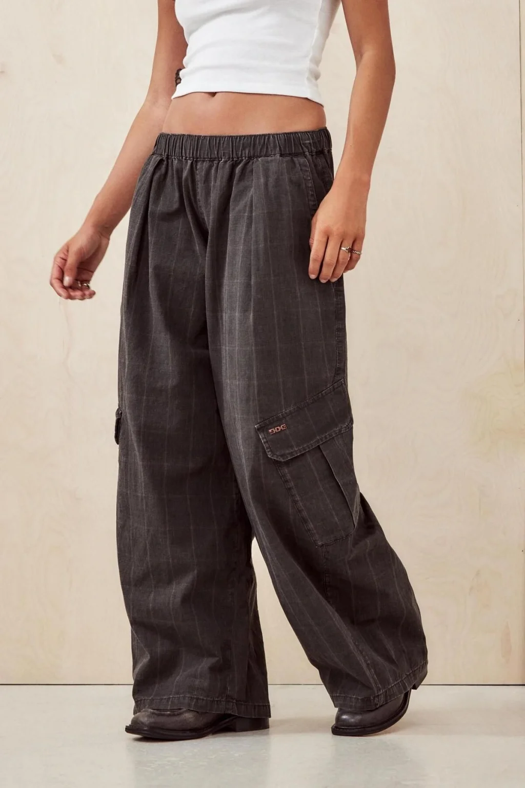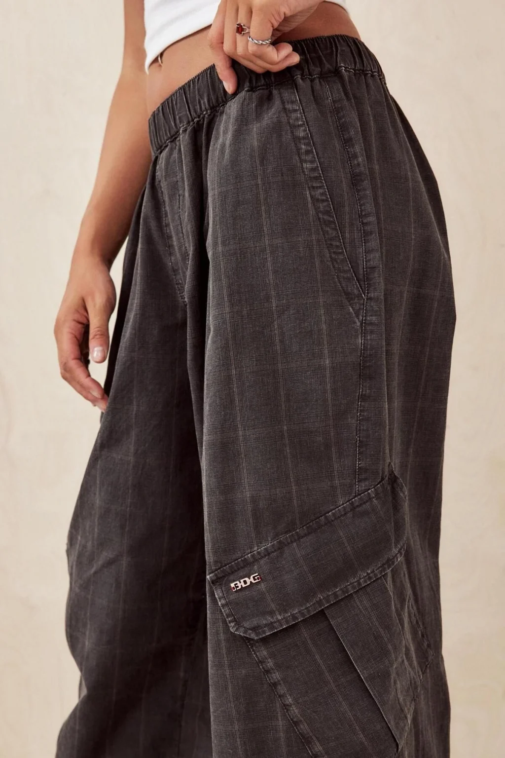 Bağcıklı Paça Detaylı Gri Bol Pantolon