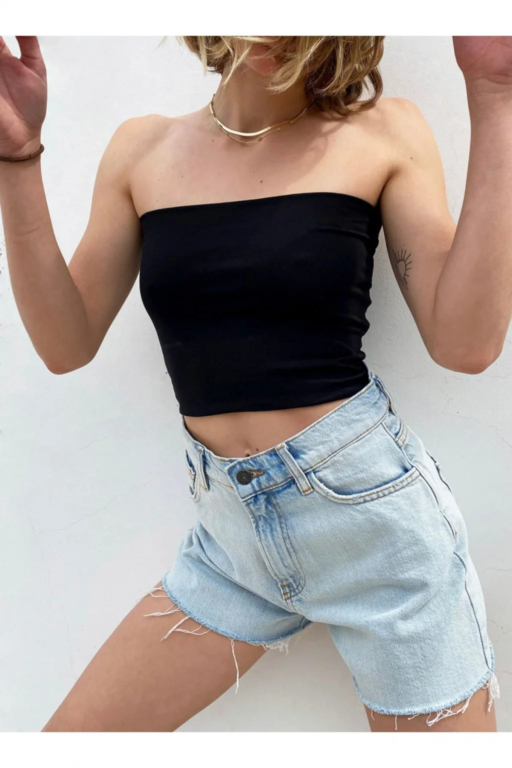 Kadın Kare Yaka Body Fit Kesim Basic Crop Bluz-Atlet