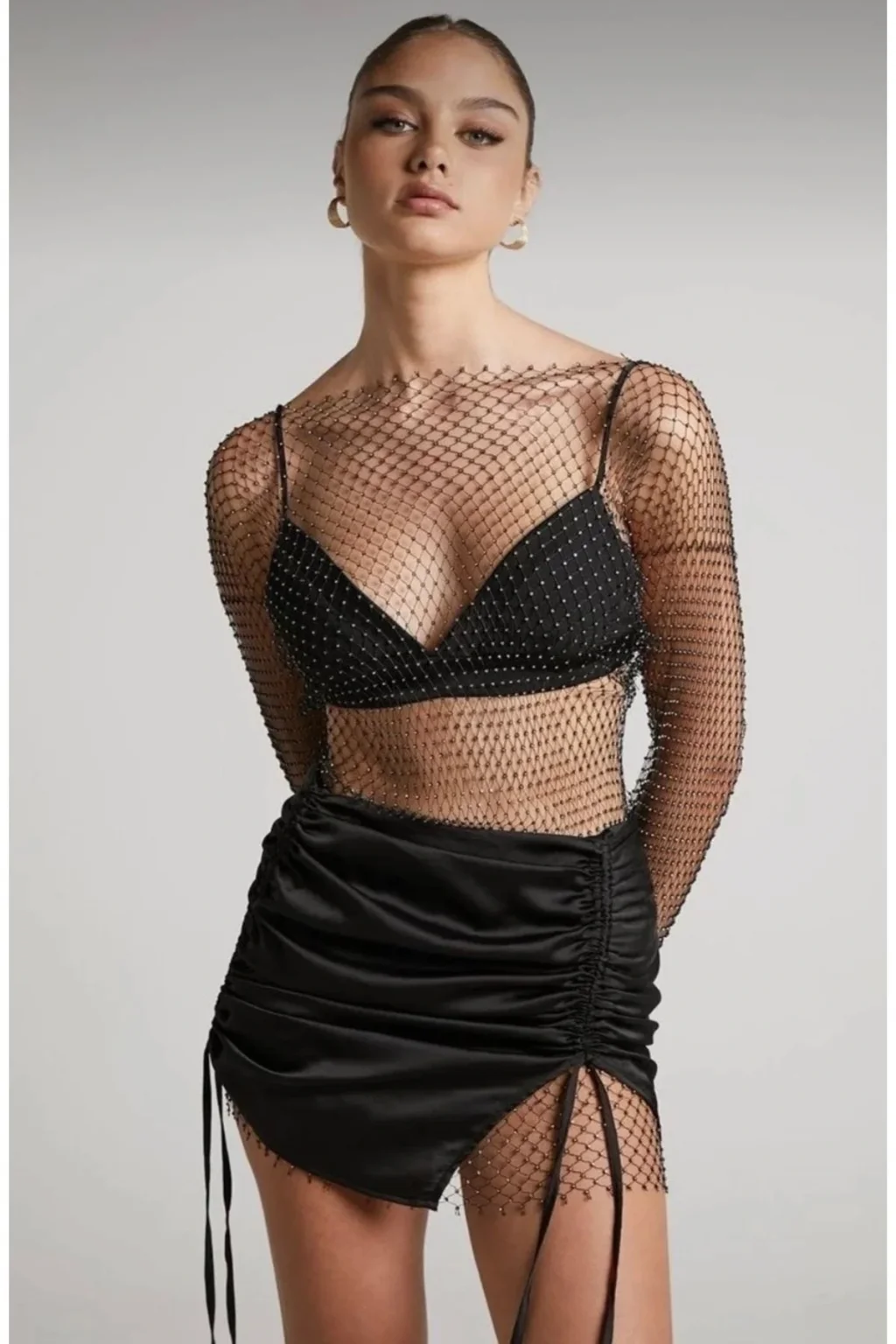 Asimetrik Kesim Slim Fit Straplez Dantel Bluz Astarlı Zarif Tasarım