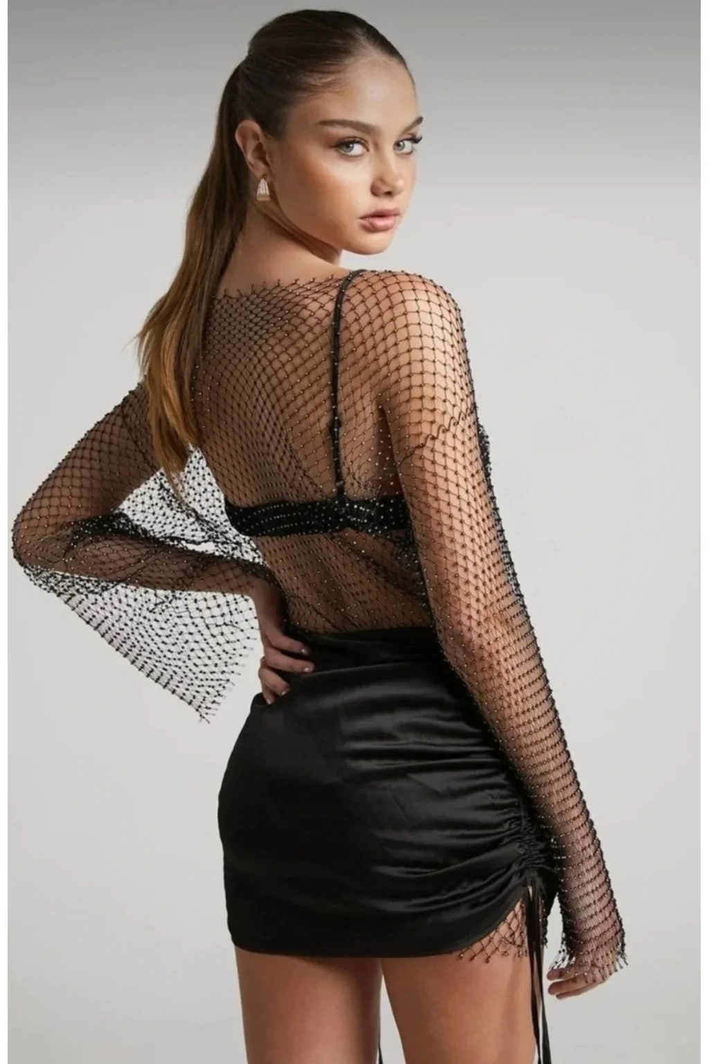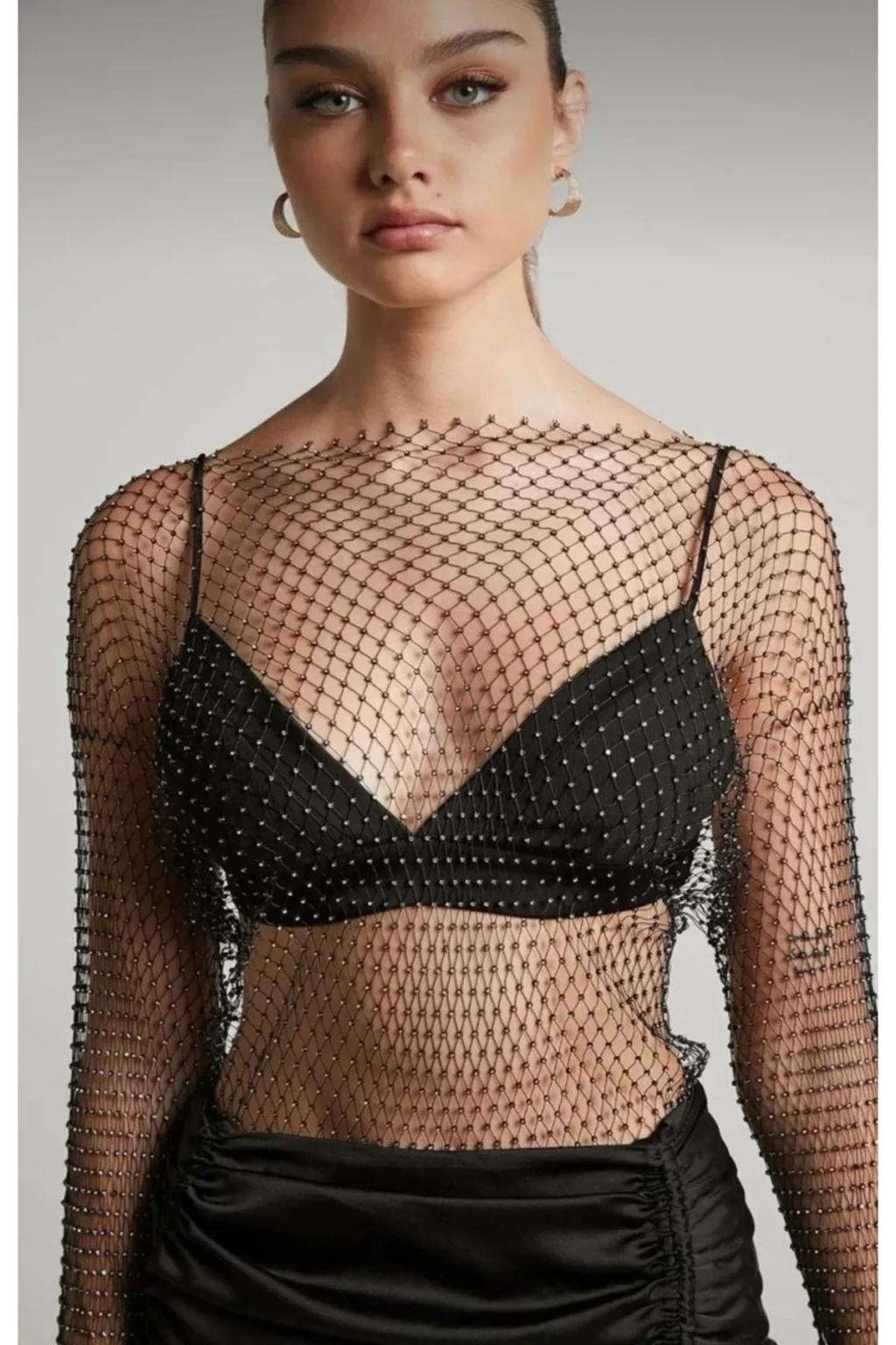 Dantelli Halter Yaka Sırt Dekolteli Transparan Katlı Crop Bluz