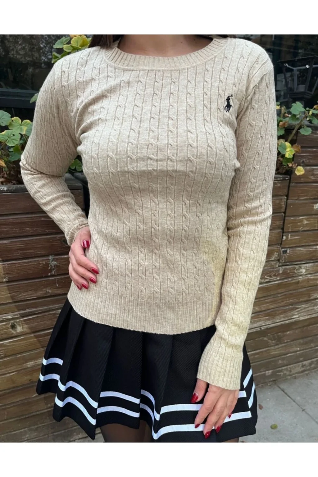 Bisiklet Yaka Manzara Desenli Yünlü Geniş Kazak