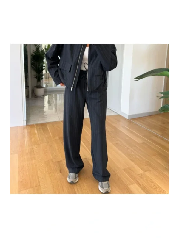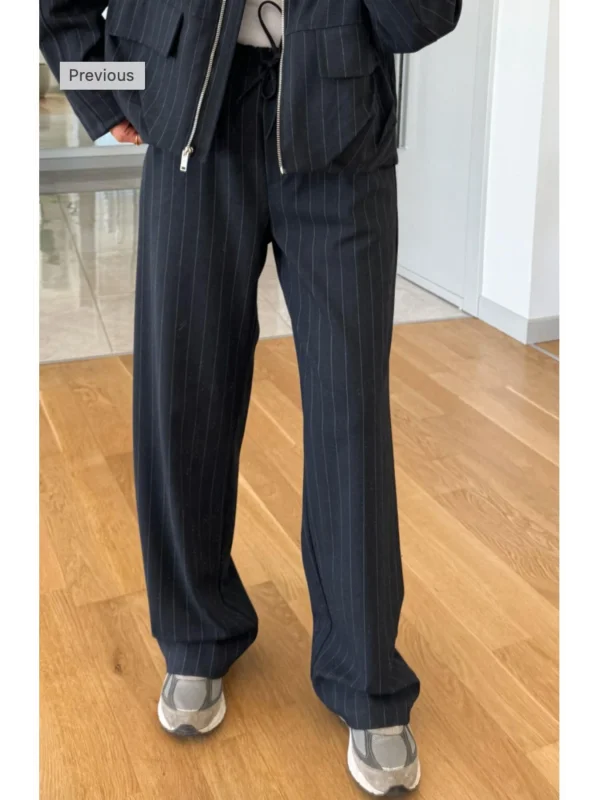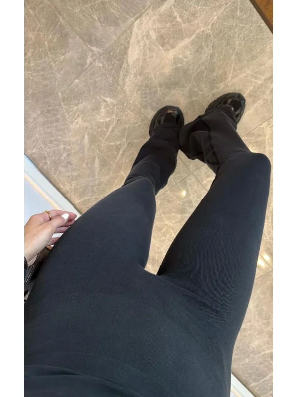 Lacivert Beli Lastikli Çizgili Tayt Pantolon