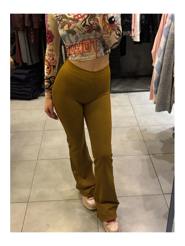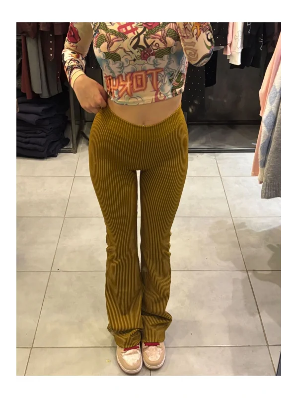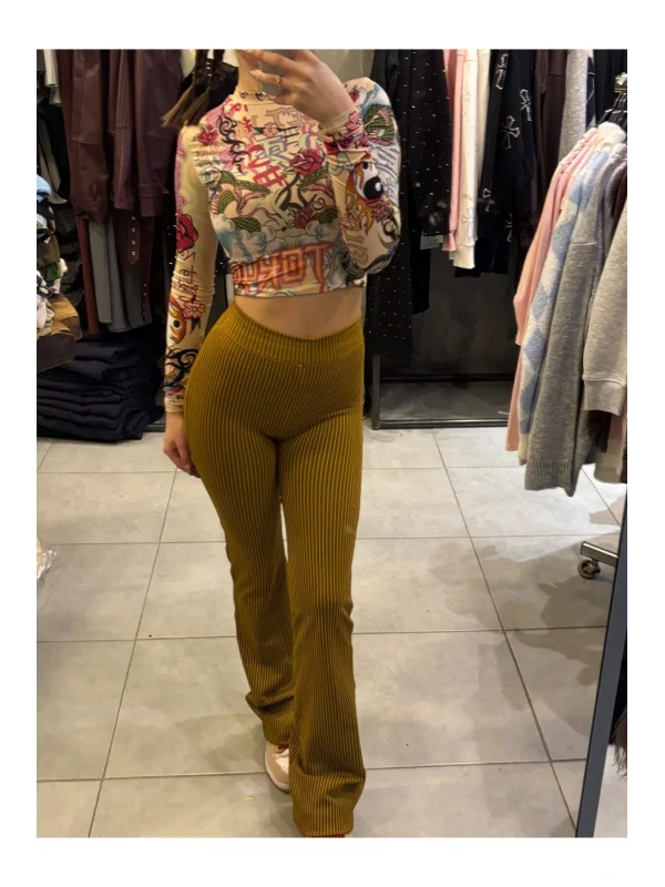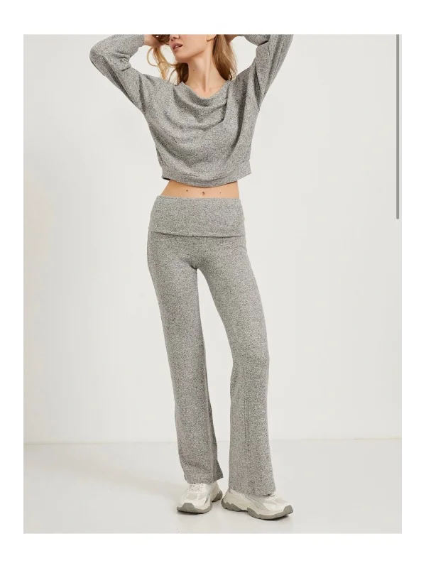 Katlanmış Bel Bantlı İspanyol Paça Pantolon