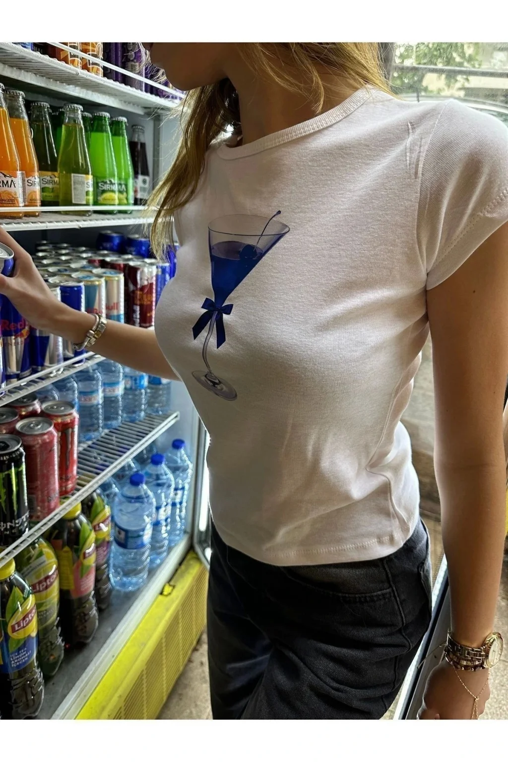 Dantel Kirazlı Fiyonk Crop Tshirt