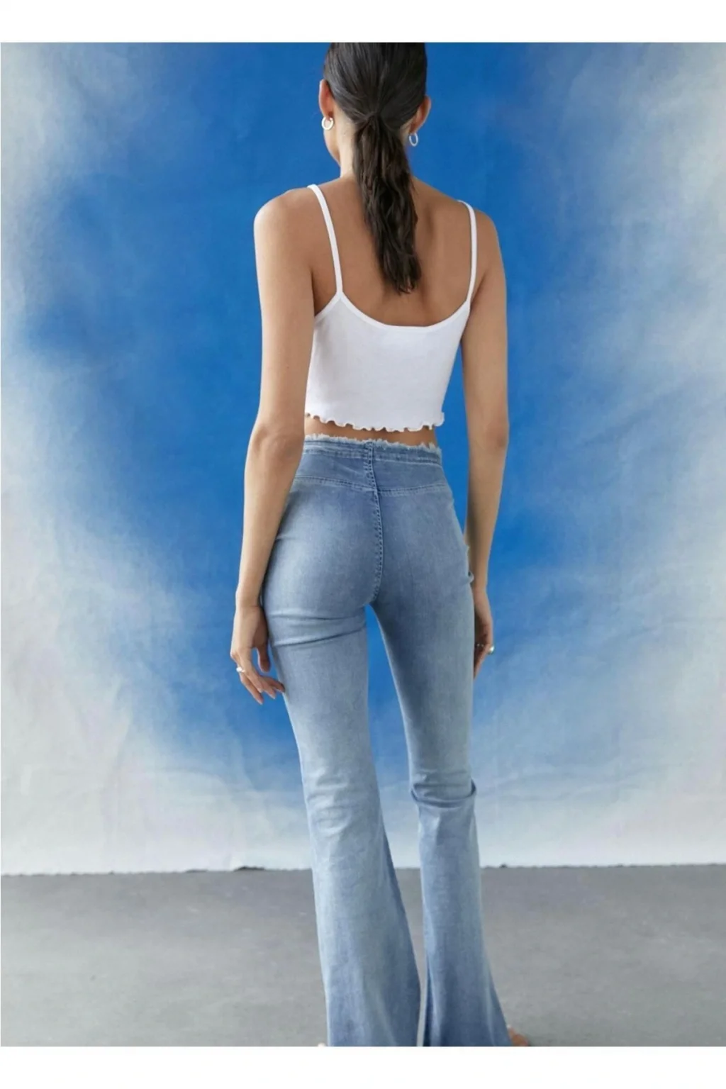 Y2k Çizme Paça Süper Düşük Bel Yıkamalı Jean Bootcut Kot Pantolon & Low Waist