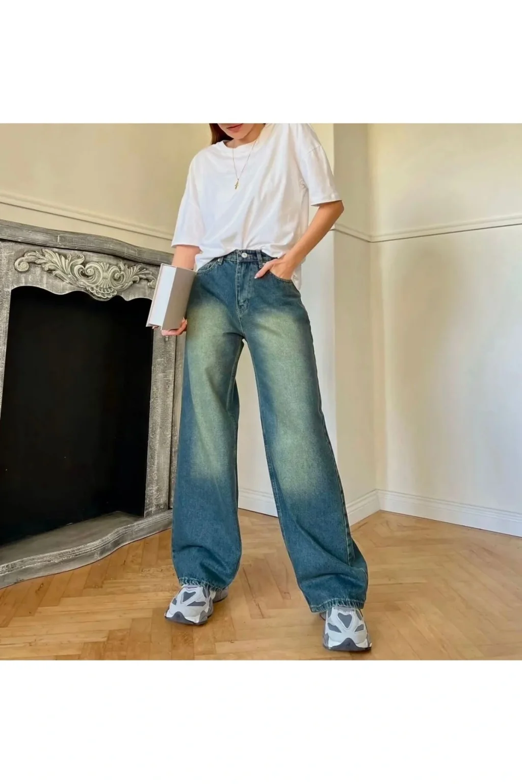 SB Düşük Bel Geniş Paça Kot Pantolon