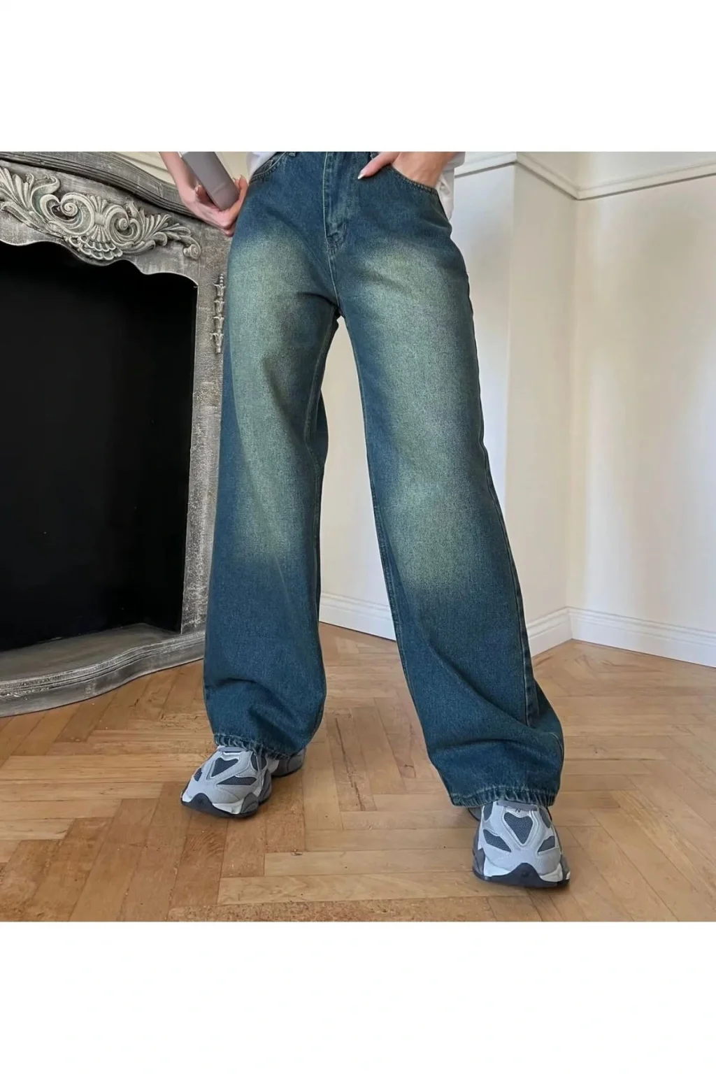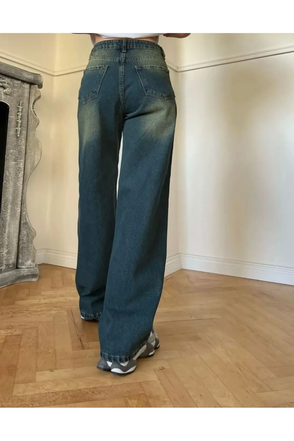 Orta Bel Rahat Kesim Flared Geniş Paça Vintage Mavi Kot Pantolon