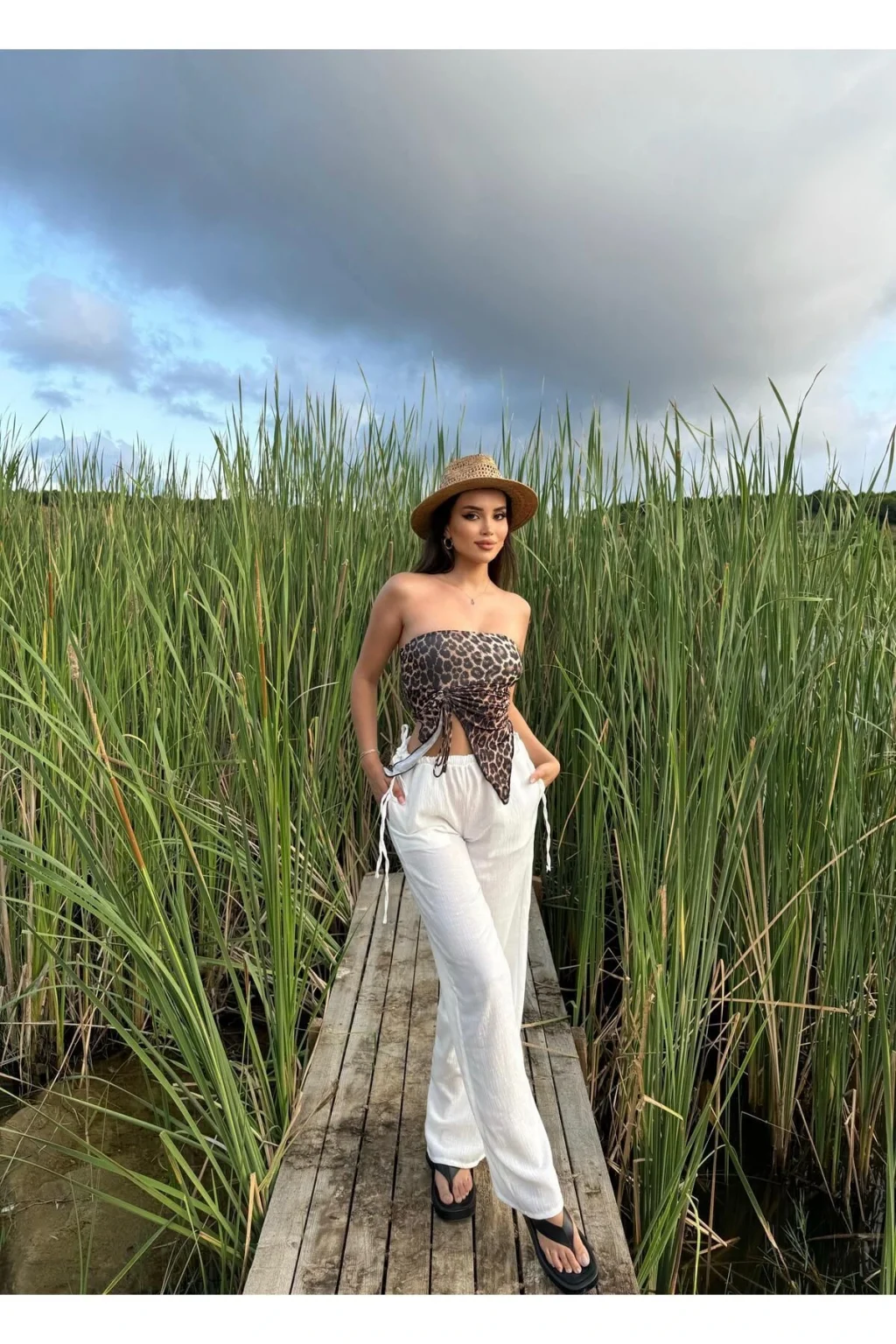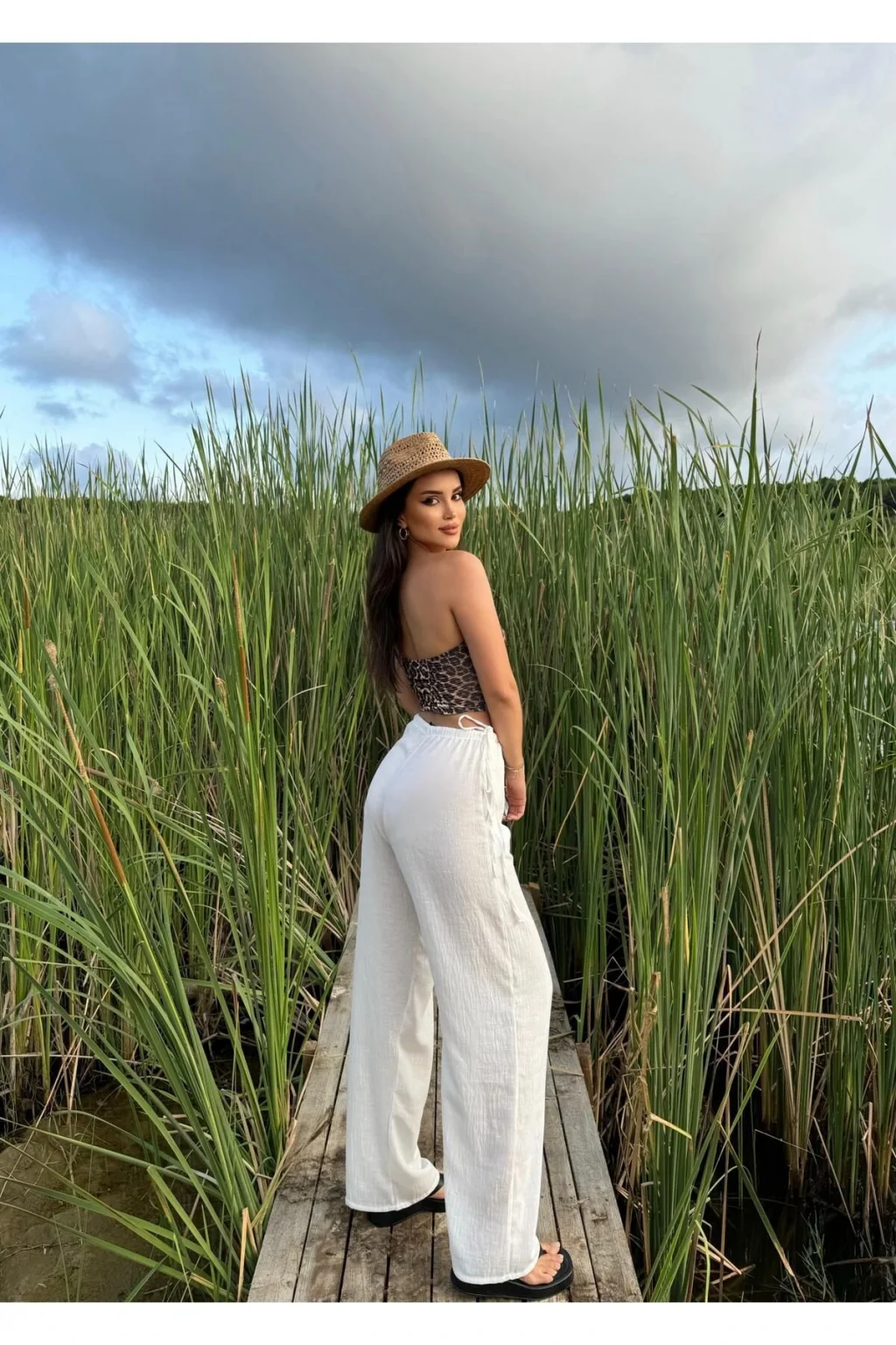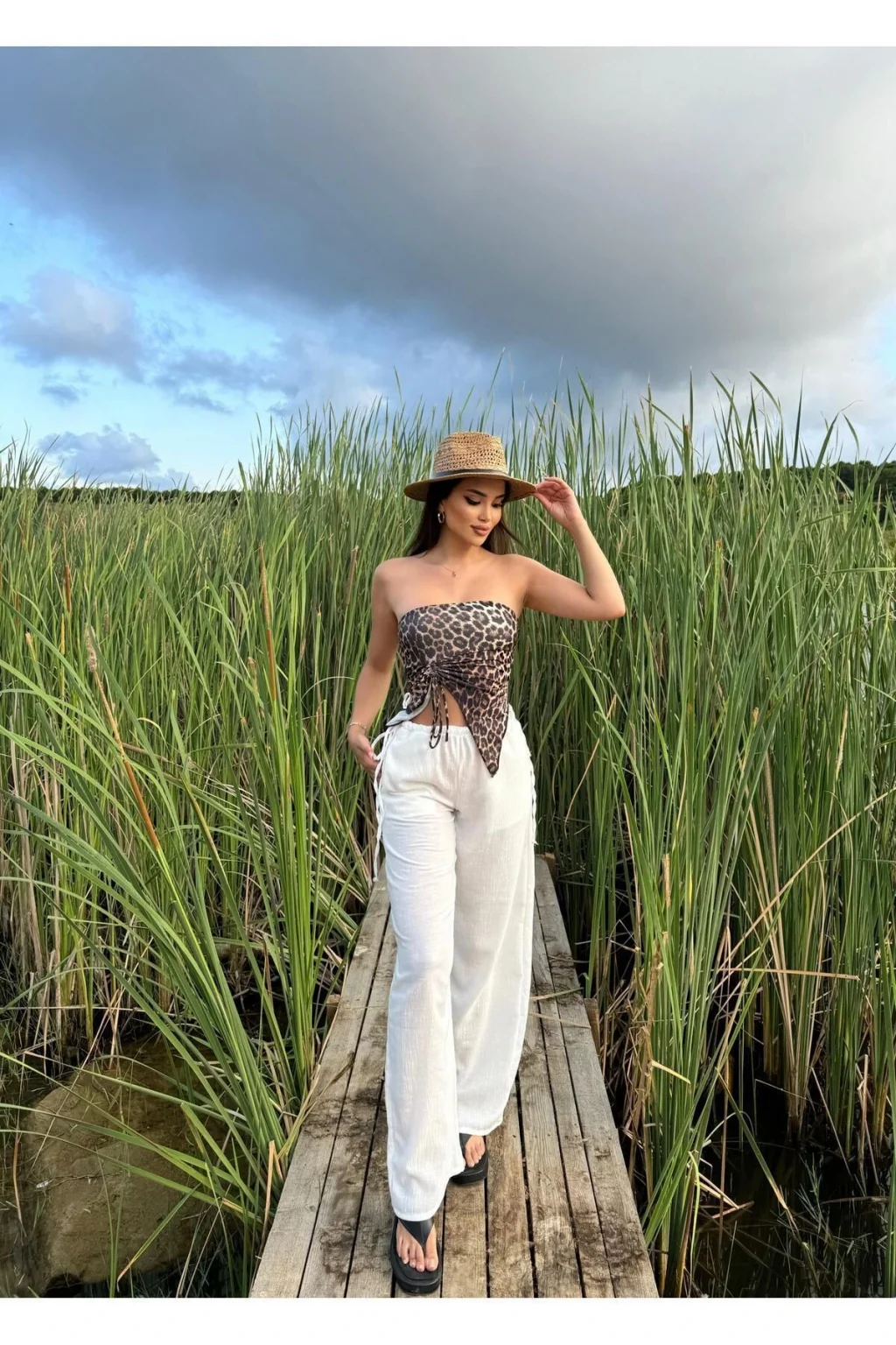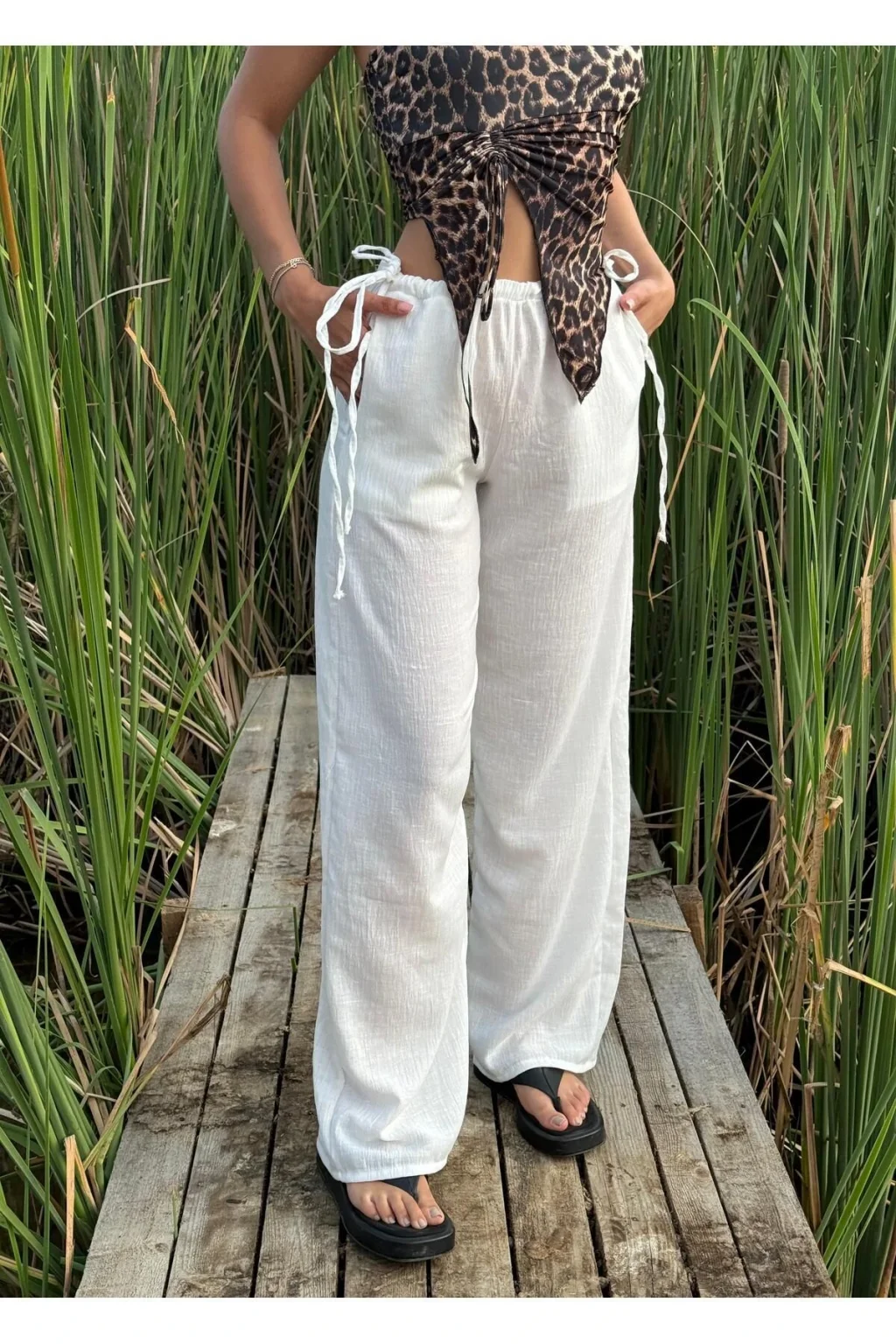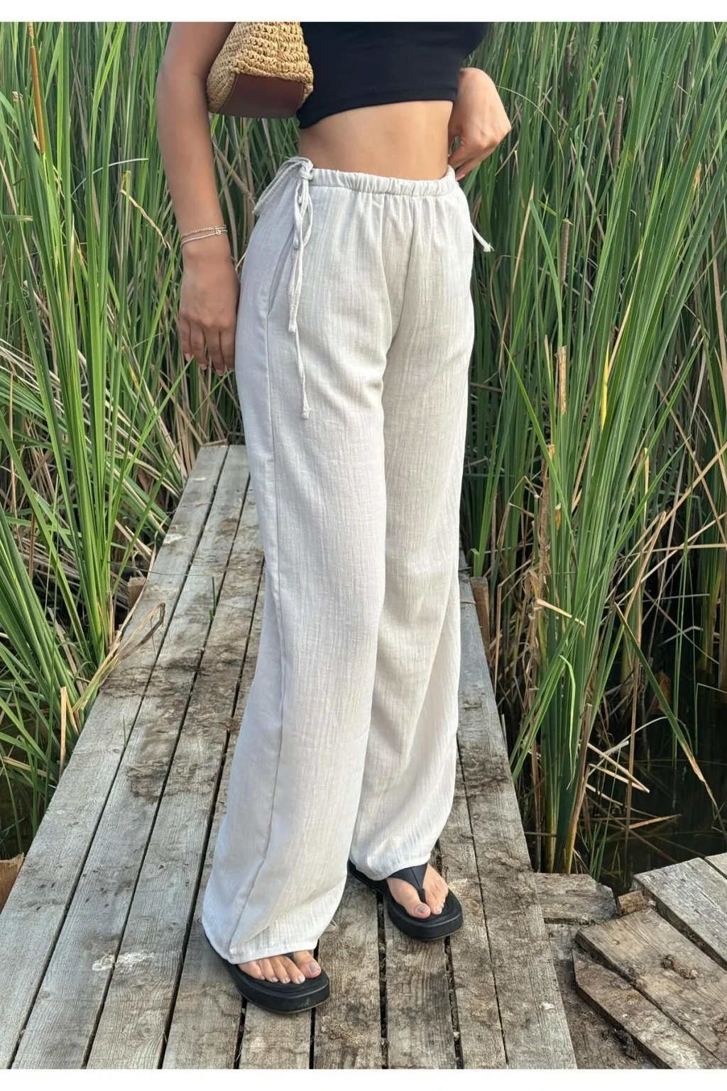 Y2k Yandan Bağcıklı Keten Pantolon