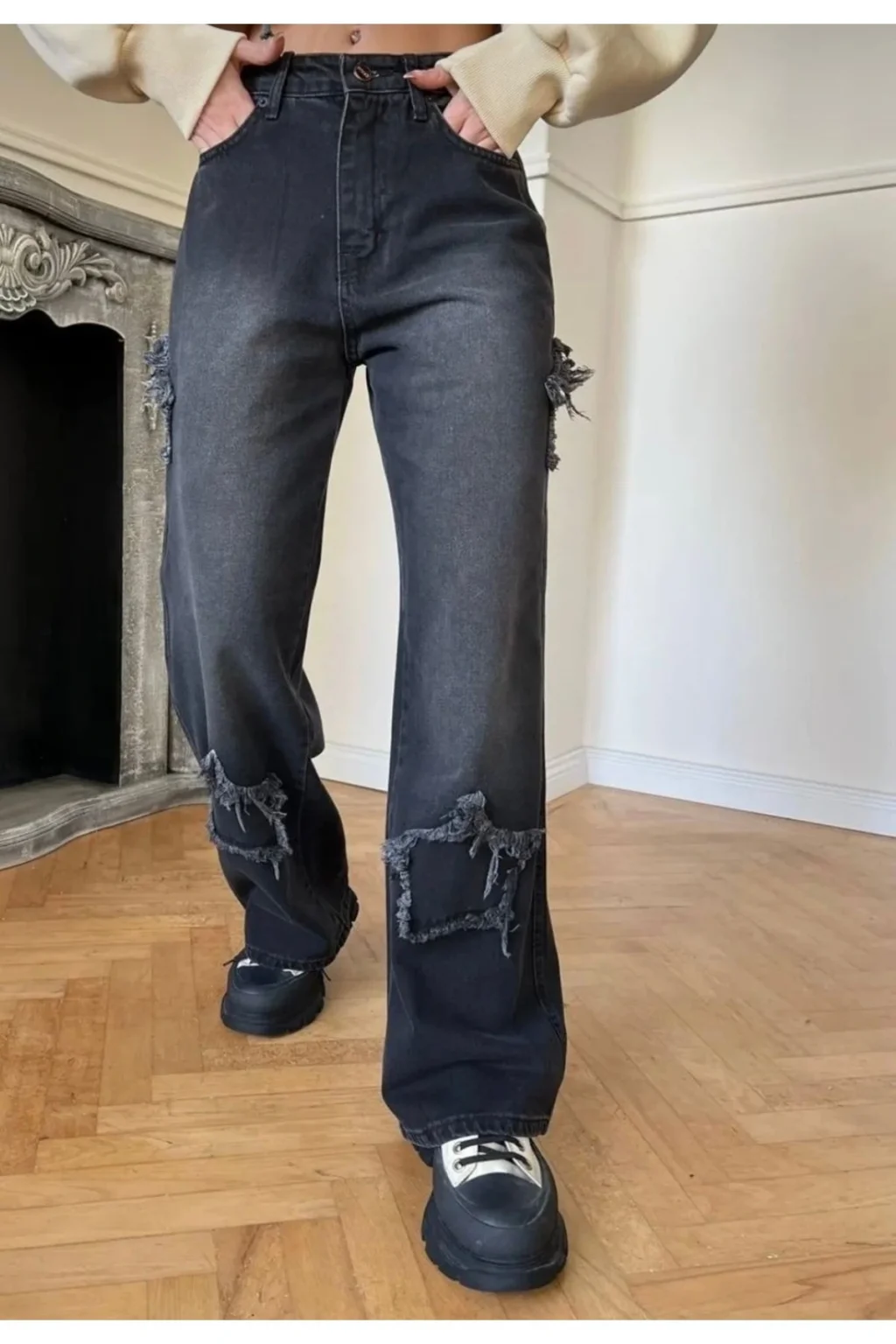 SB Düşük Bel Geniş Paça Kot Pantolon