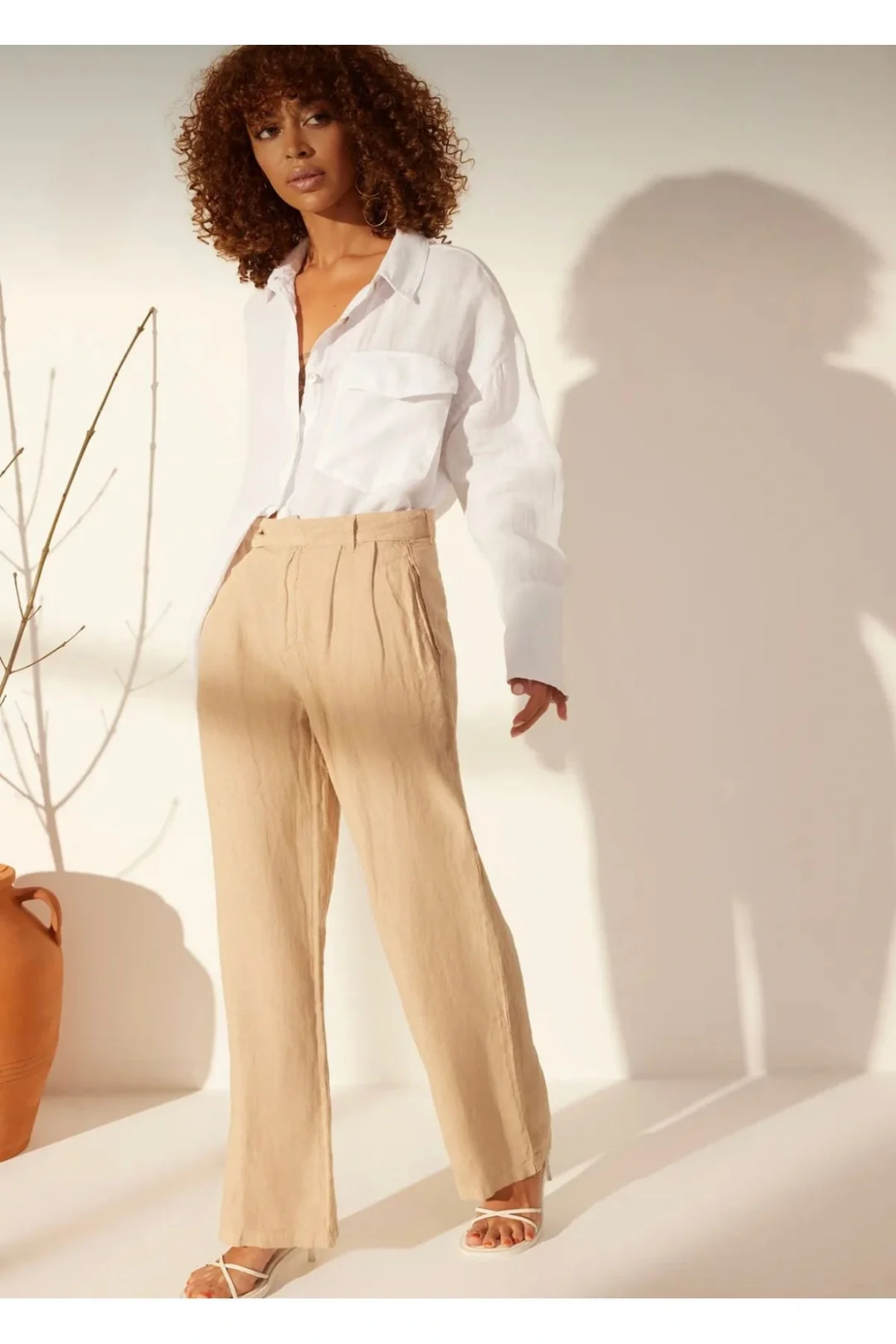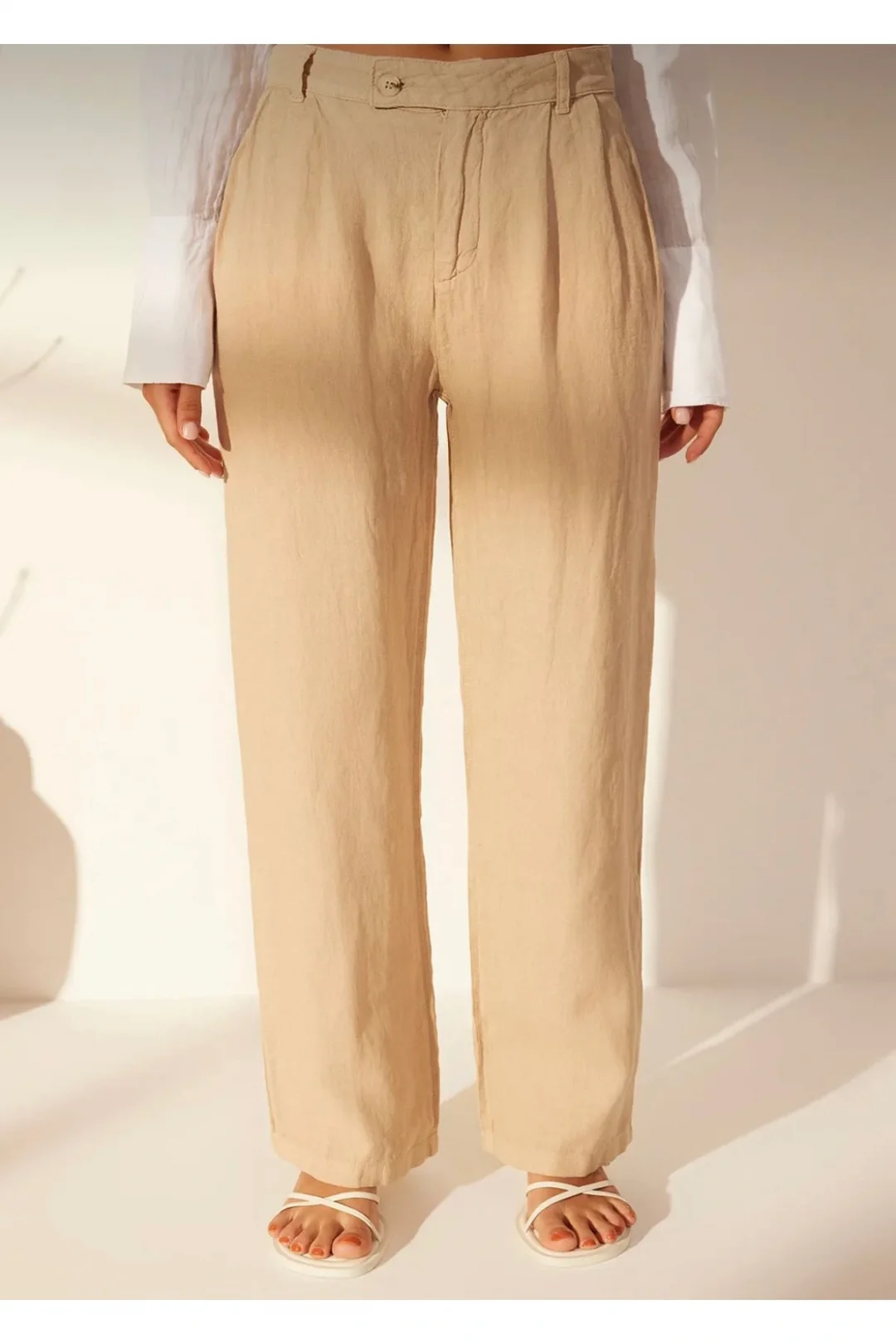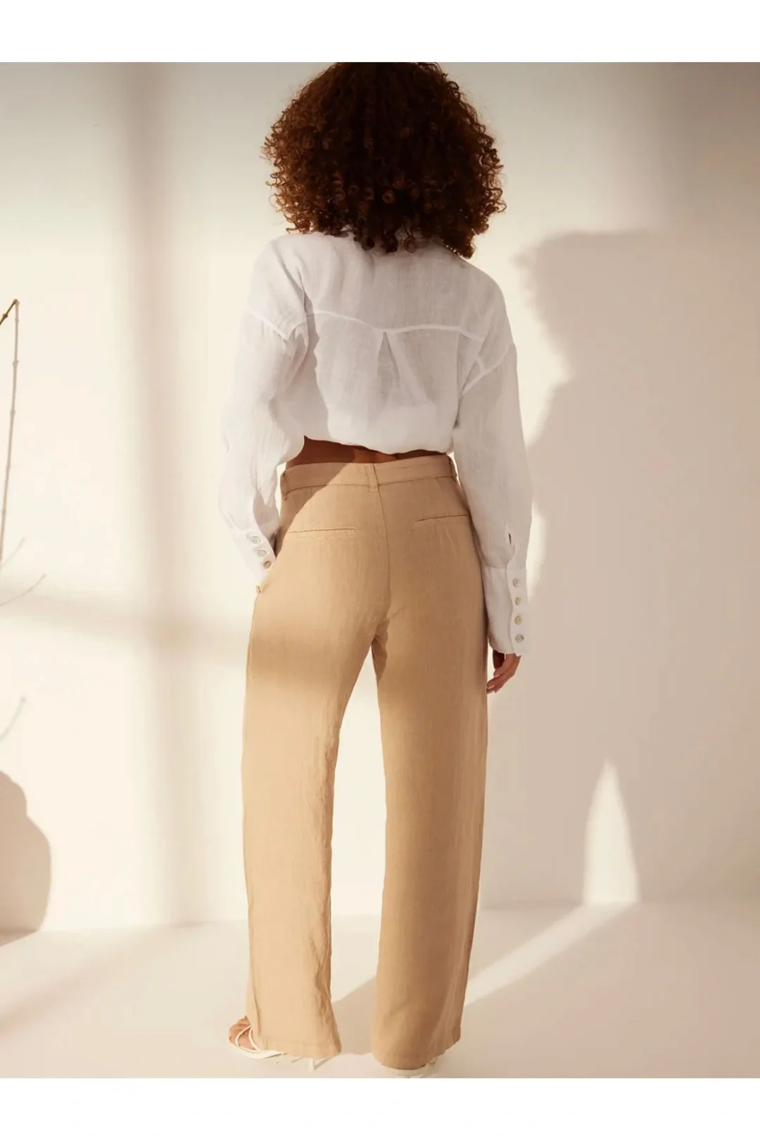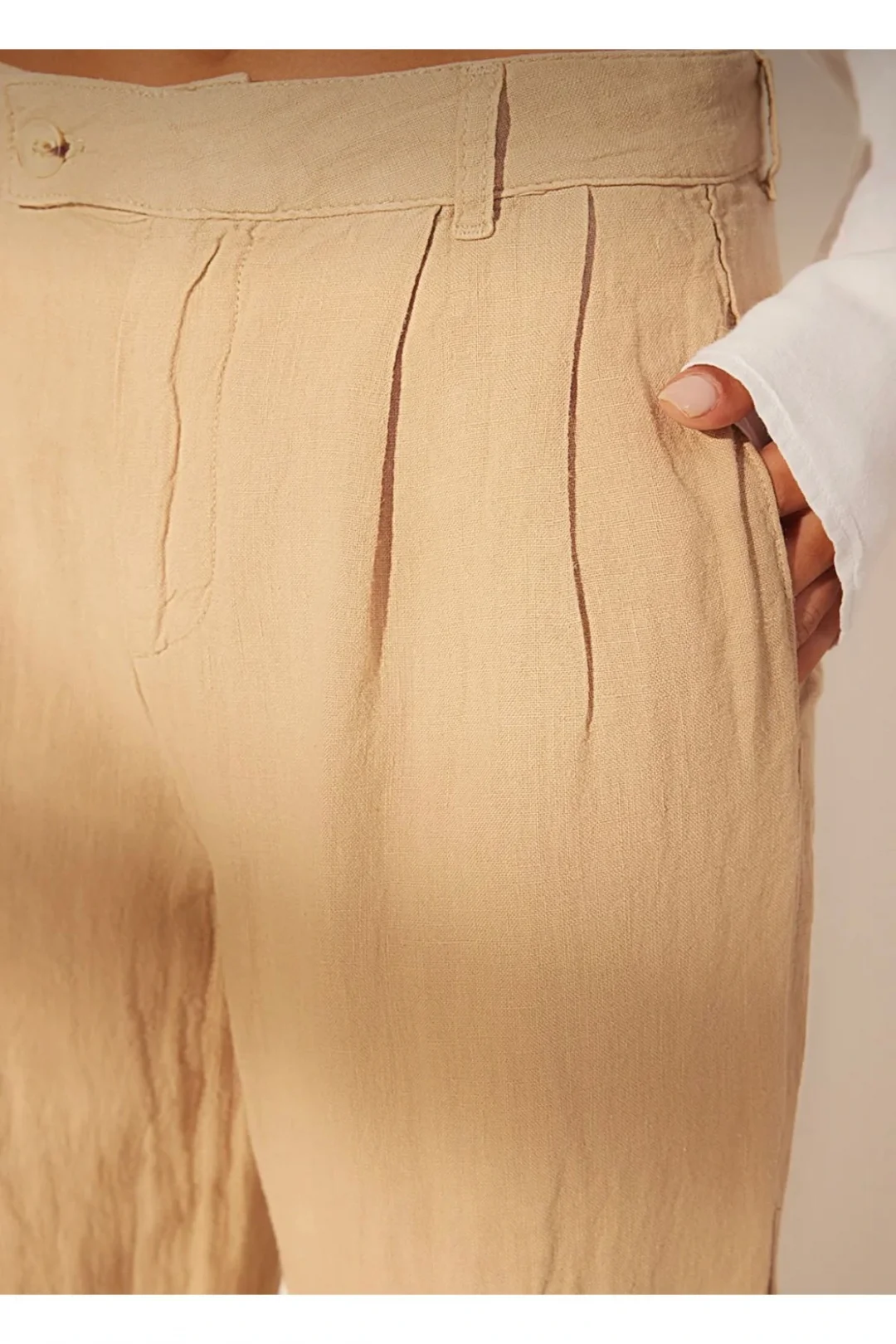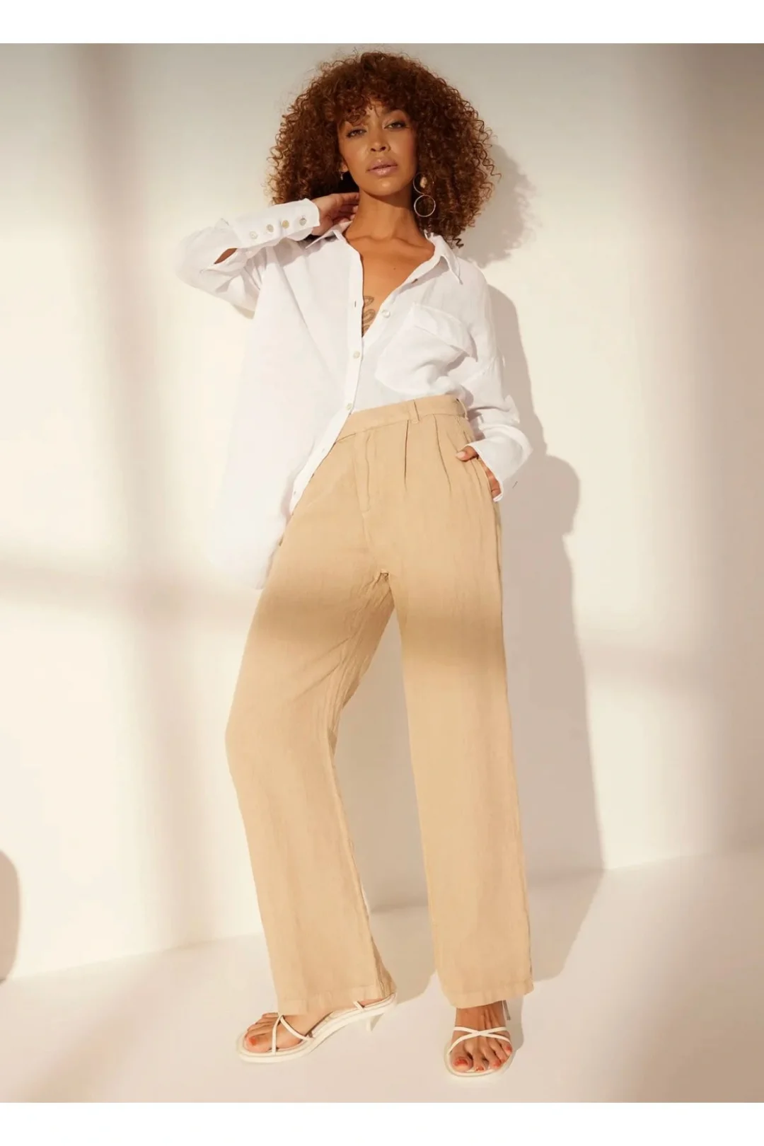 Kadın Yüksek Bel Pileli Füme Modal Karışımlı Bol Paça Uzun Pantolon