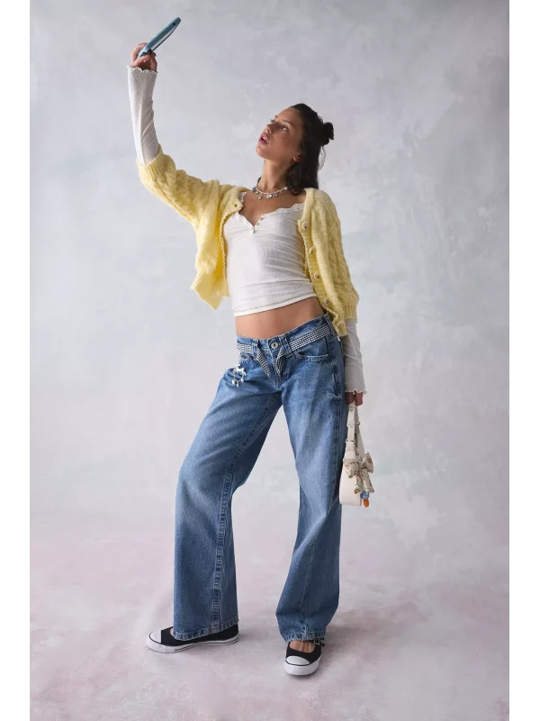Üstte düğmeli fermuar sineği Bel bandındaki halkalar36 bedende iç dikiş uzunluğu: 84 cm