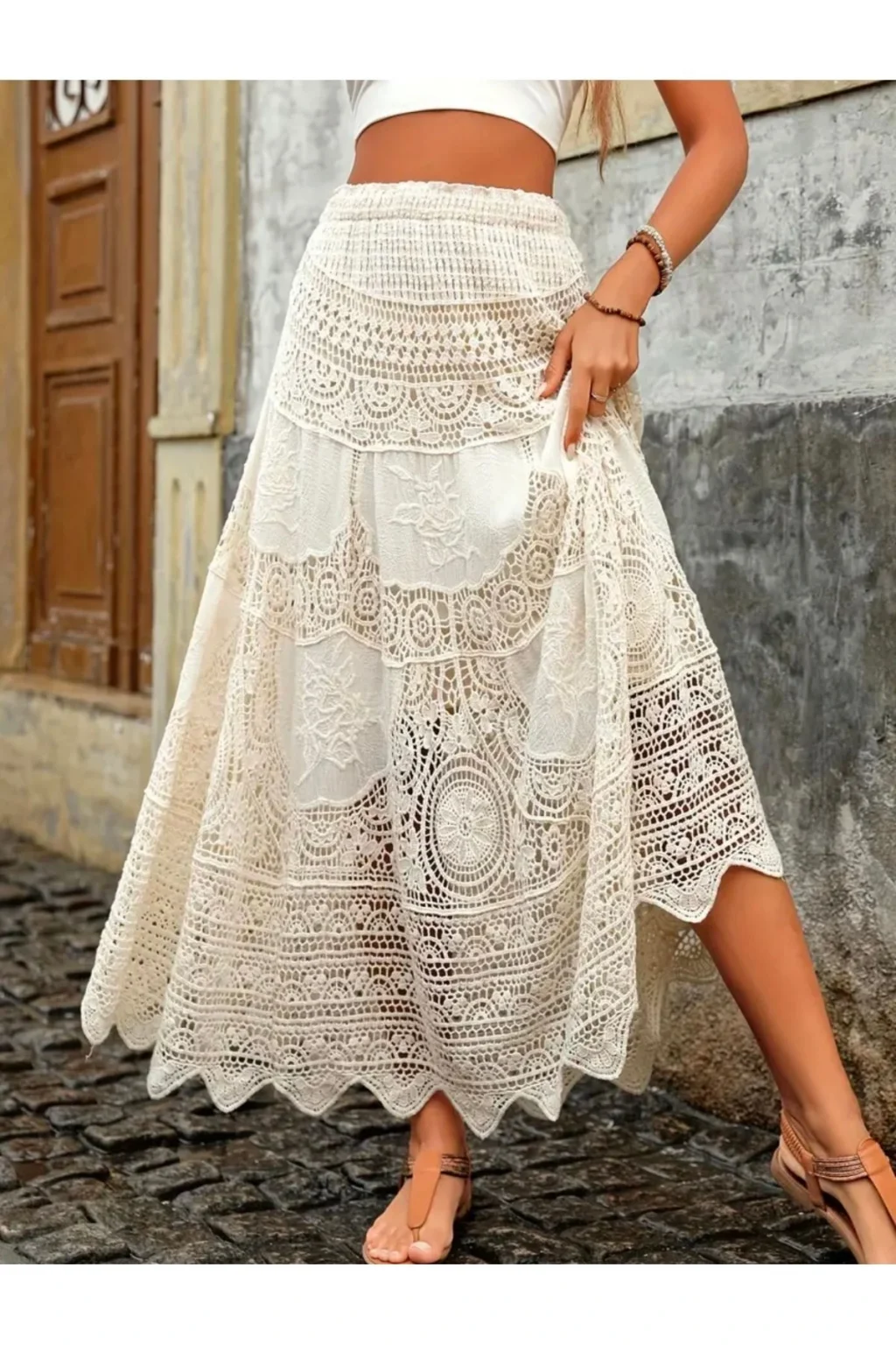 Özenle tasarlanmış zarif dantel dokusu sayesinde her adımda stilinizi yansıtmanızı sağlar ; Yüksek kaliteli dantel kumaşı, hem estetik bir görünüm hem de maksimum konfor sunar Çan formundaki kesimi, feminen hatlarınızı zarifçe ön plana çıkarırken aynı zamanda hareket özgürlüğü sağlar Normal bel yüksekliğiyle tasarlanan yapısı, gün boyu konforlu ve rahat bir kullanım imkânı sunar Uzun etek boyu, klasik zarafeti modern detaylarla buluşturarak asil bir siluet yaratır Orta kalınlıktaki dokusu sayesinde ilkbahar, sonbahar ve serin yaz akşamlarında ideal bir tercih olur Güpür desenli detaylar ve dantel işlemeler, sofistike bir görünüm kazandırarak her ortamda dikkat çeker İç kısmında bulunan yumuşak astar, vücuda doğrudan temas eden bölgelerde ekstra rahatlık sağlar Günlük kullanım için uygun olan bu etek, iç giyimde oluşabilecek rahatsızlıkları minimuma indirmek üzere düşünülerek tasarlanmıştır Cilt dostu pamuklu materyali ile nefes alabilir bir yapı sunar; sıcak havalarda terletmeden konforlu bir deneyim sağlar