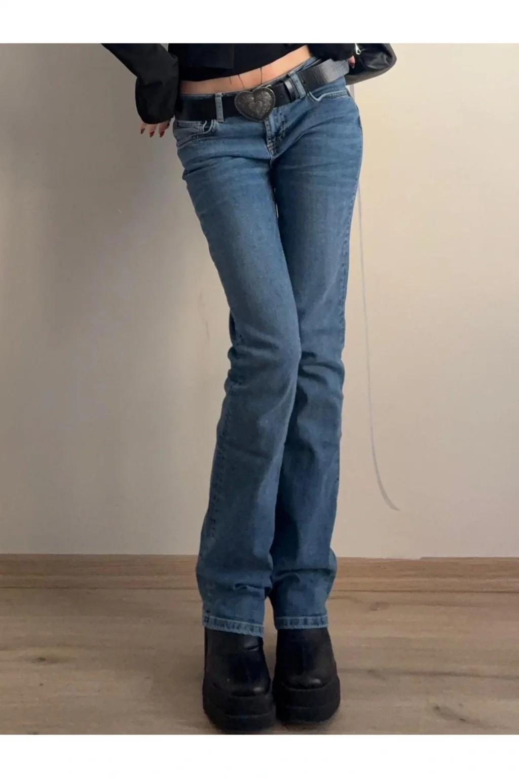 Y2k Çizme Paça Süper Düşük Bel Yıkamalı Jean Bootcut Kot Pantolon & Low Waist